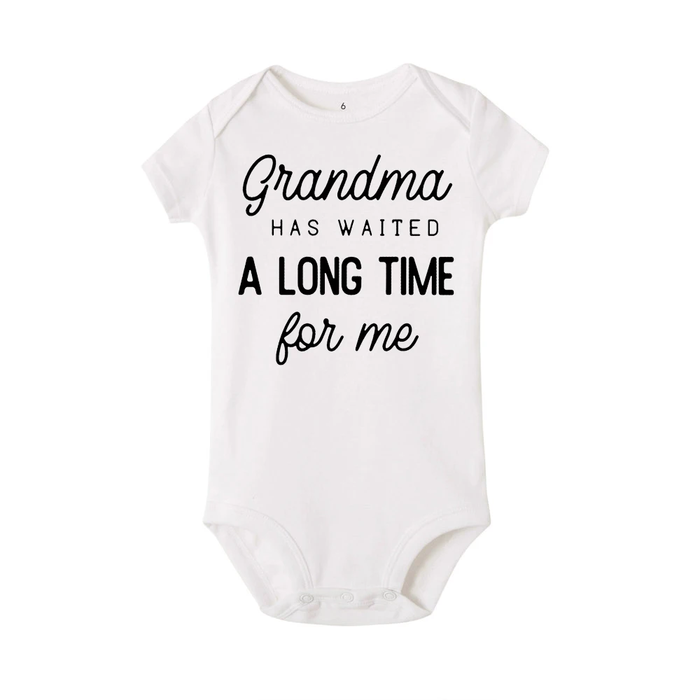 Забавное боди для новорожденных, бабушка ждала очень долго, с принтом, комбинезон с коротким рукавом для маленьких мальчиков и девочек, наряд