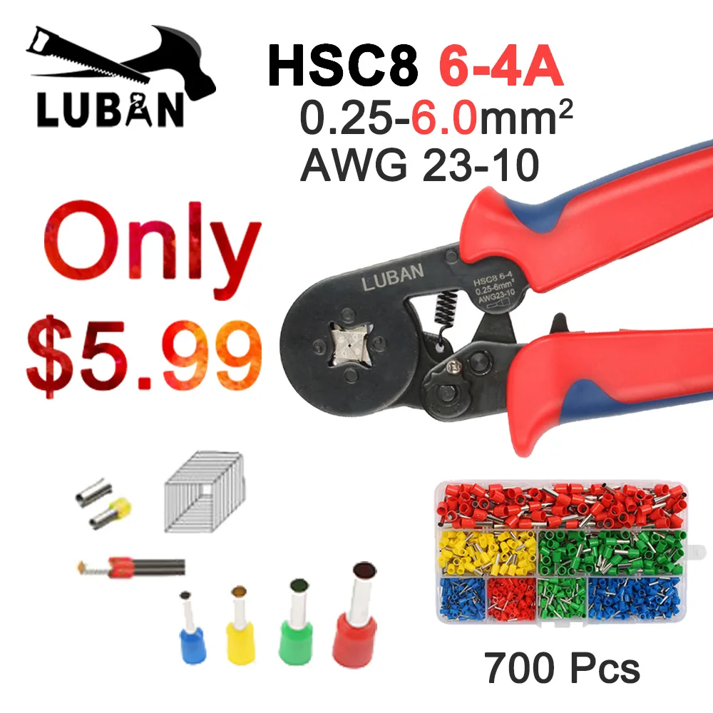 Обжимные плоскогубцы HSC8 6-6 HSC8 6-4, саморегулирующиеся мульти-инструменты для рук, плоскогубцы, лучший бренд, 0,25-6 мм 6-16 мм