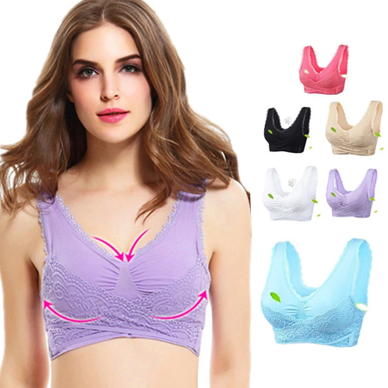 Кружевной бюстгальтер с застежкой спереди для женщин, удобный хлопковый пикантный бюстгальтер с чашками пуш-ап, с вкладышами на косточках, BR 3 шт.