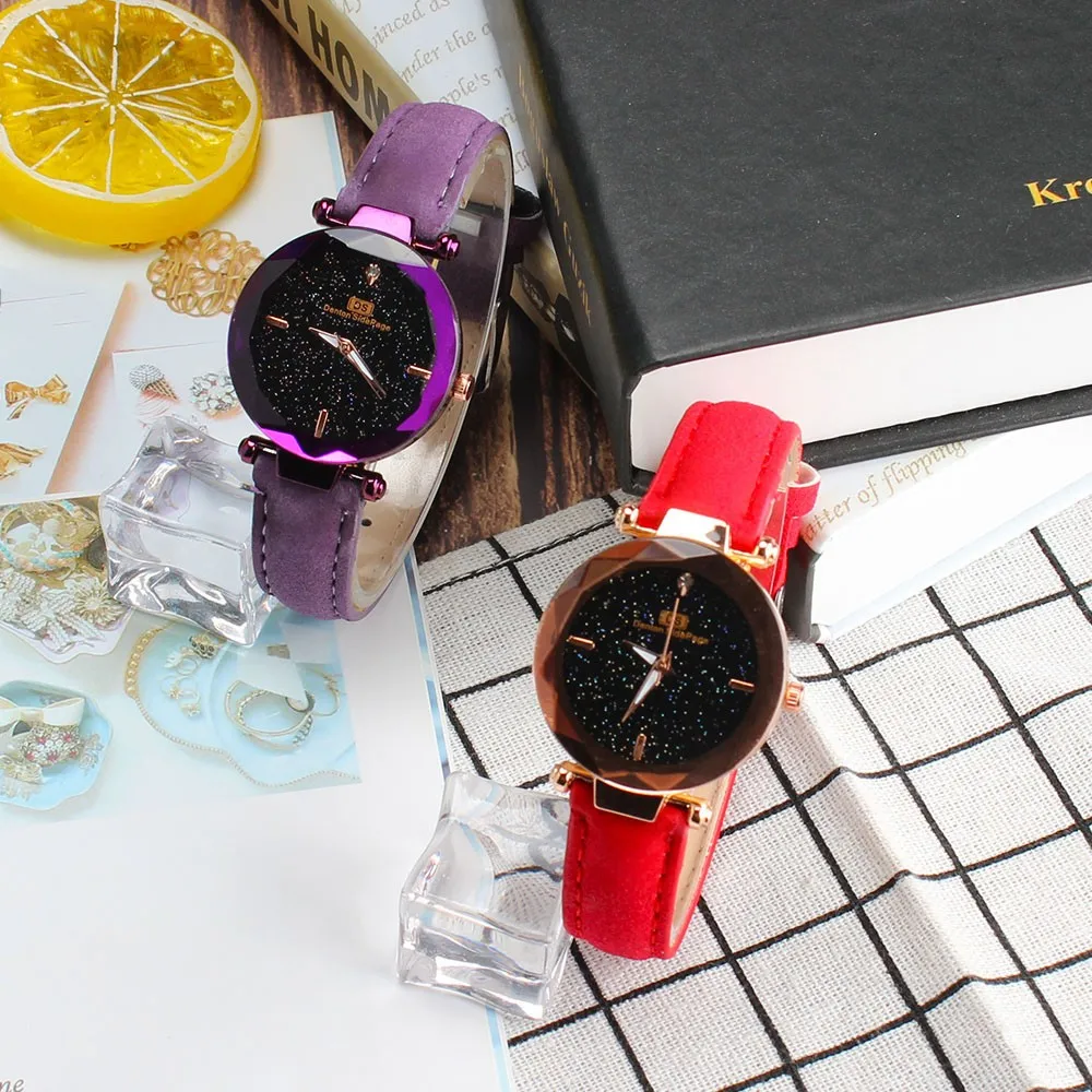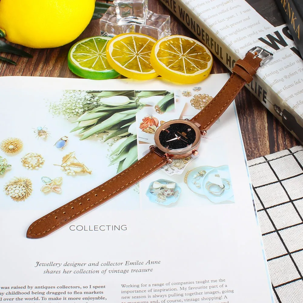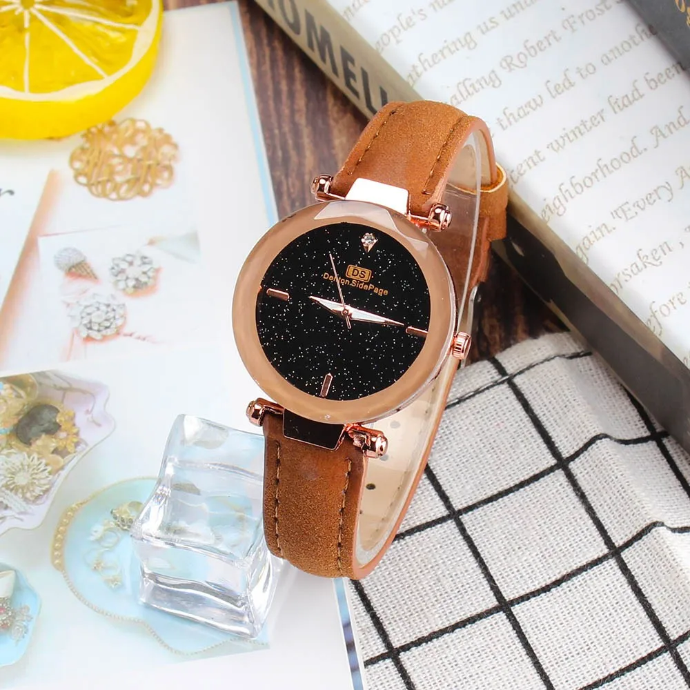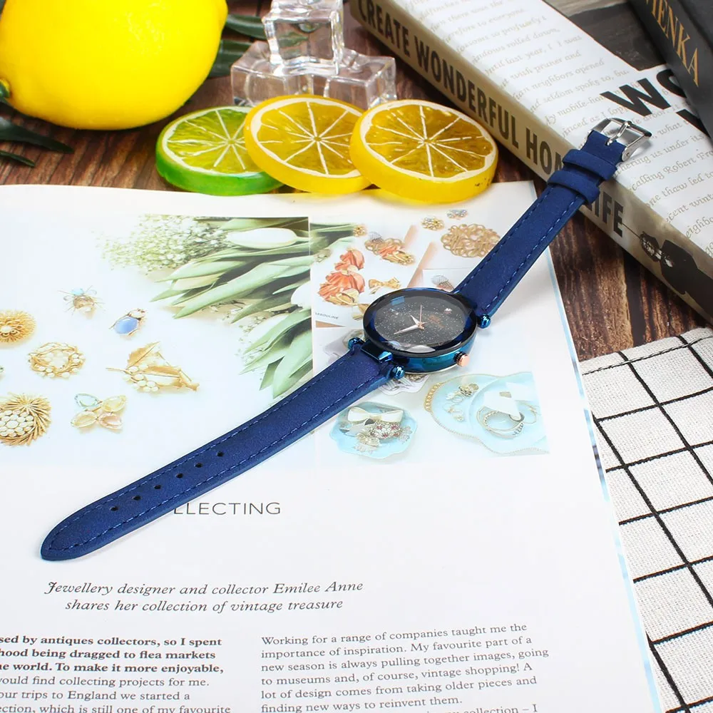 2020 изысканные женские часы Звездное небо Женские кварцевые наручные часы с кожаным ремешком элегантные женские часы браслет часы Montre Femme 2018