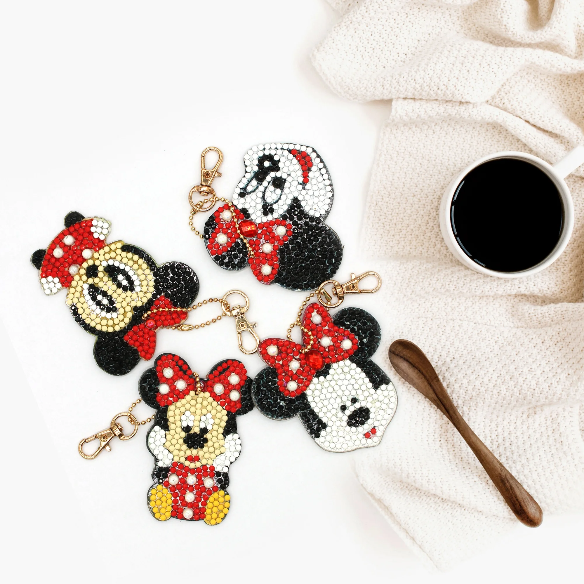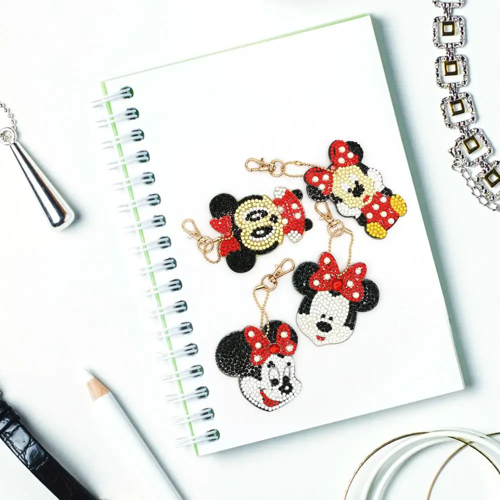 4 шт., алмазная сумка для ключей с рисунком Минни, DIY, украшение для подвесок, круглая Алмазная мозаика, украшение для вышивки в подарок