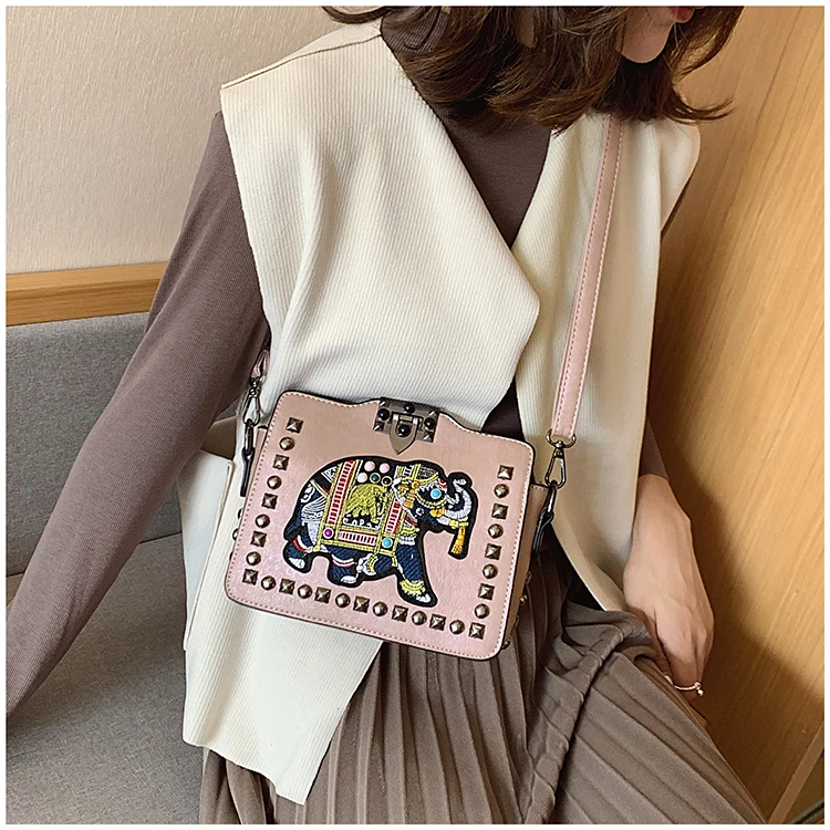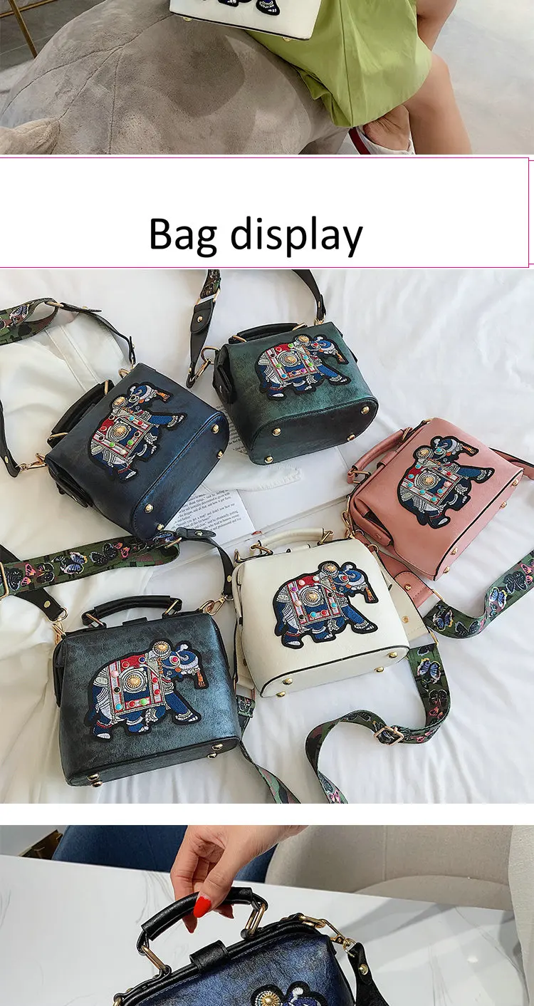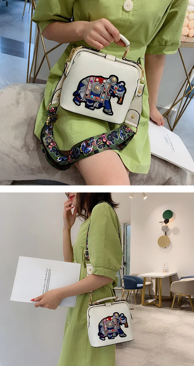 Зеленая женская сумка с вышивкой в виде слона, женская сумка на плечо 2020, дизайнерские роскошные сумки с широким ремешком-бабочкой для женщин