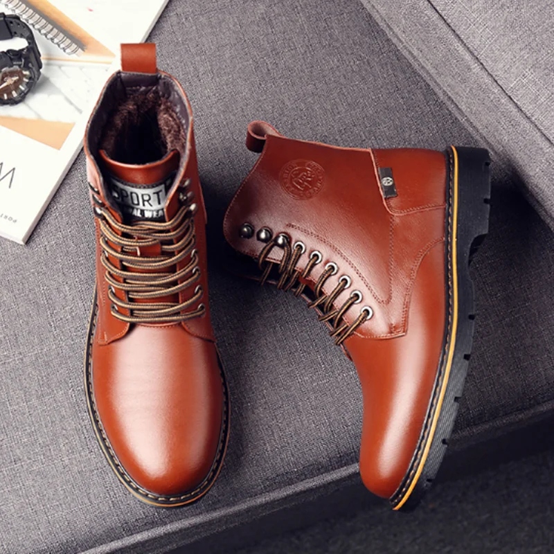 Высококачественные зимние сапоги из кожи крупного рогатого скота; нескользящие теплые снежные ботинки мужские сапоги Модные кружевные сапоги на мотоцикле