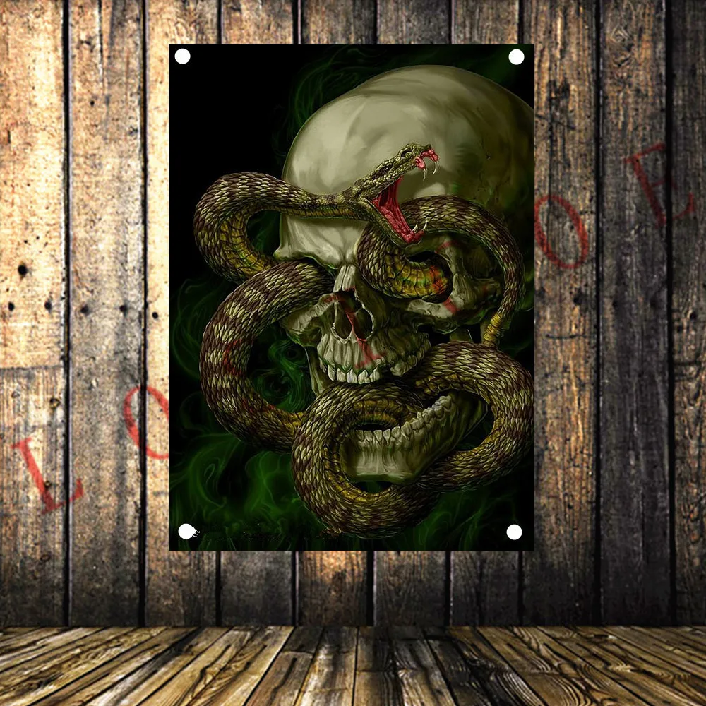 Тату-череп, искусственный гобелен, HD обои, украшение для дома, вин...