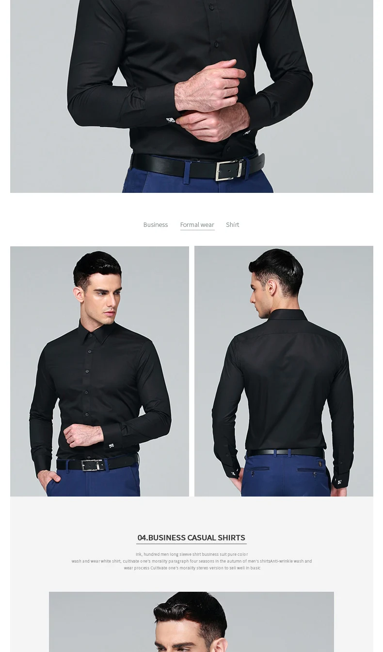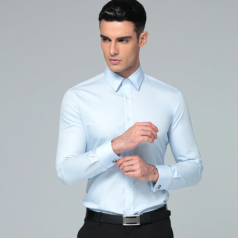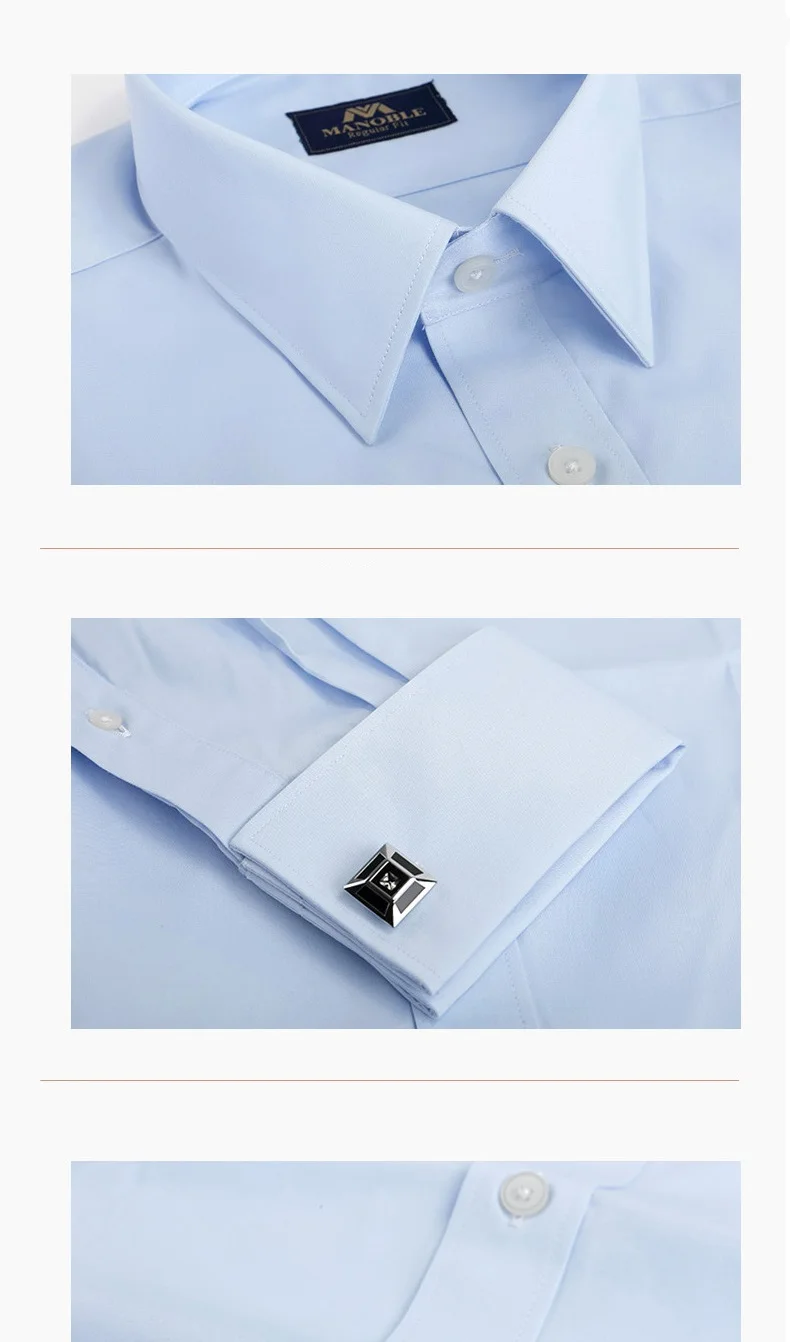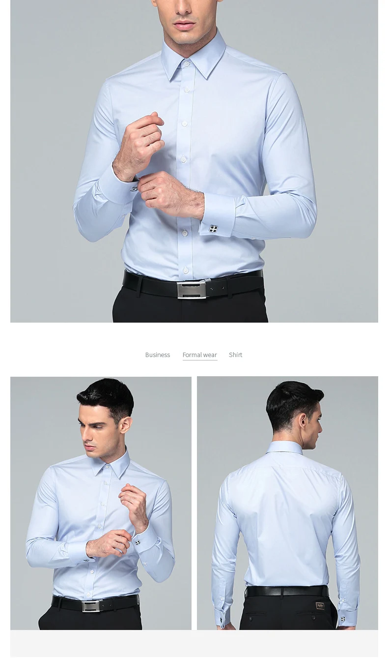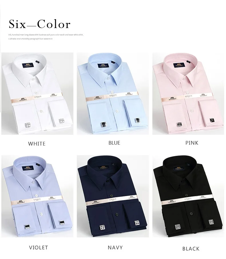 Высококачественная Мужская рубашка, брендовая Новая модная классическая рубашка для свадьбы, деловые рубашки с длинным рукавом и запонками, однотонные