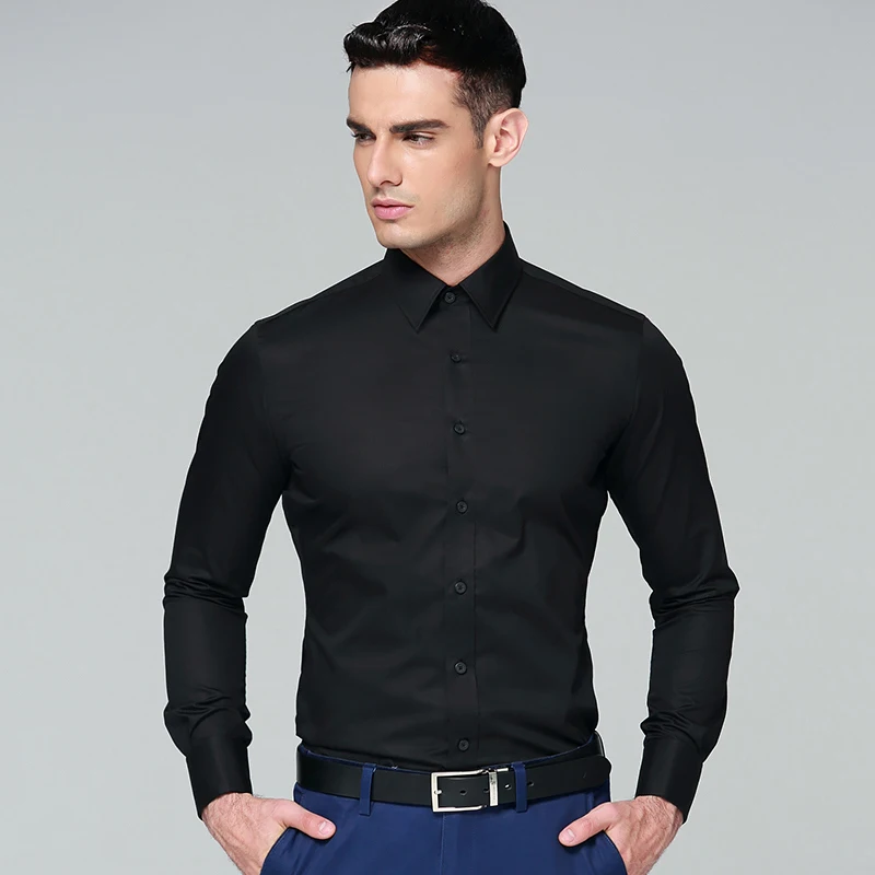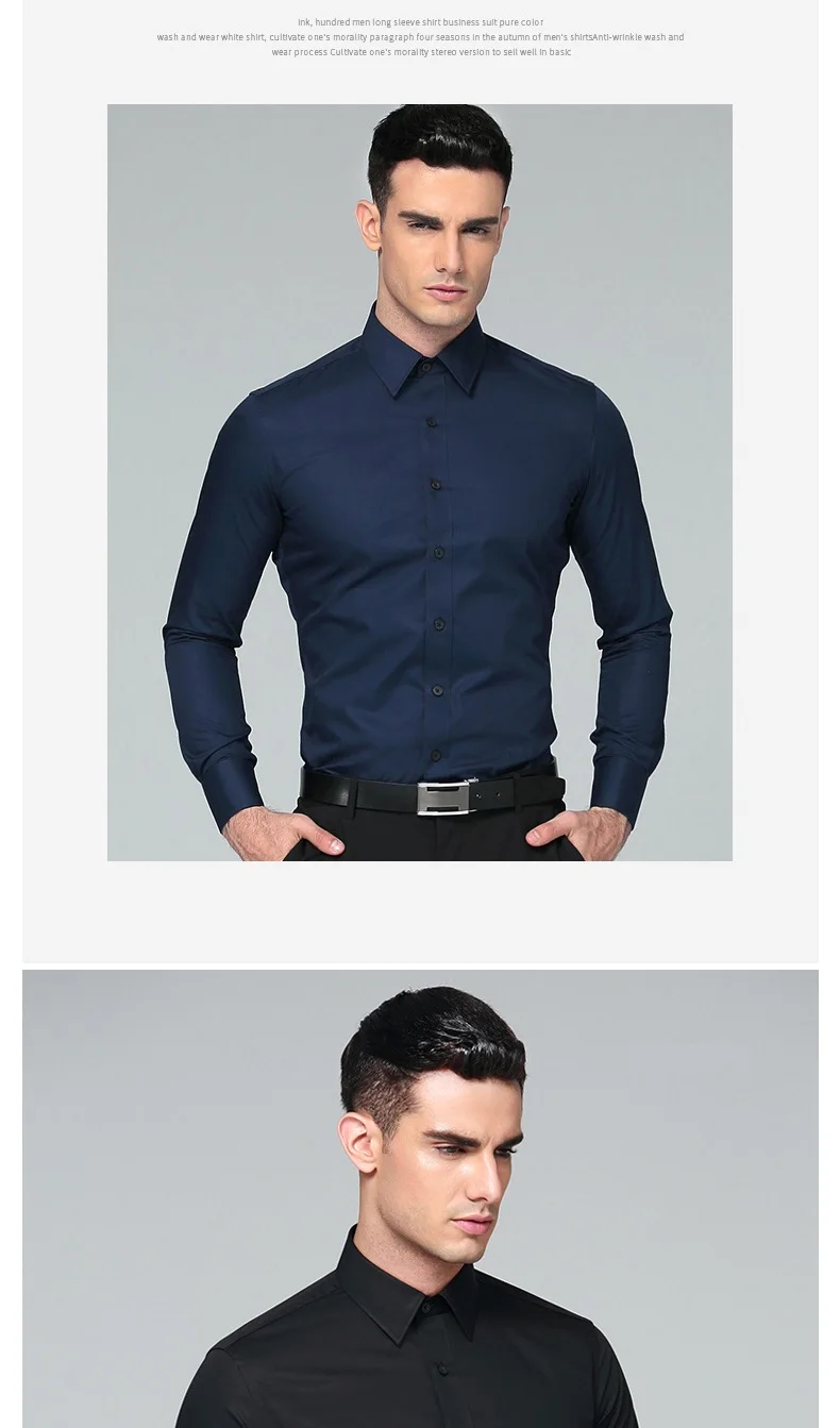 Мужская Однотонная рубашка с длинным рукавом, Классическая хлопкова...