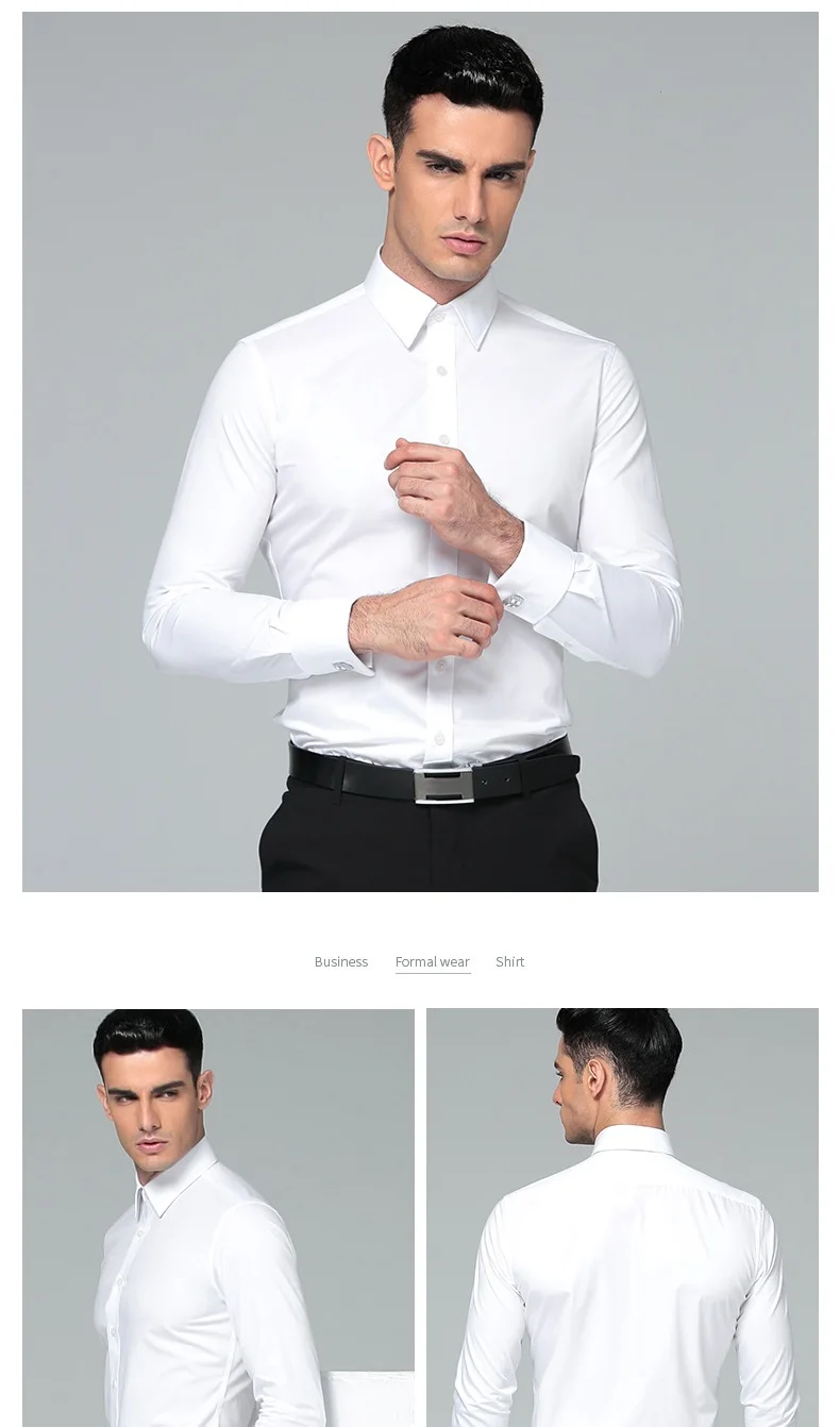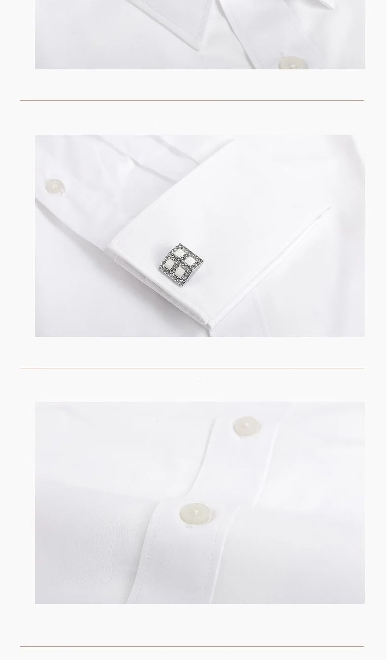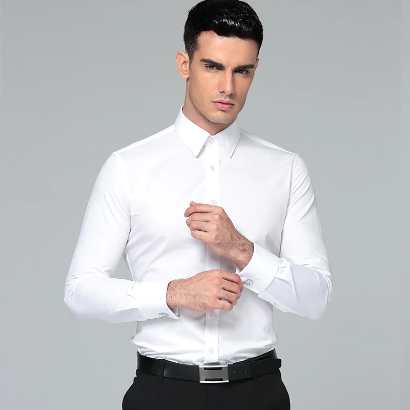 Мужская хлопковая Классическая рубашка, Классическая деловая рубашка с длинными рукавами и запонками, для свадьбы и работы