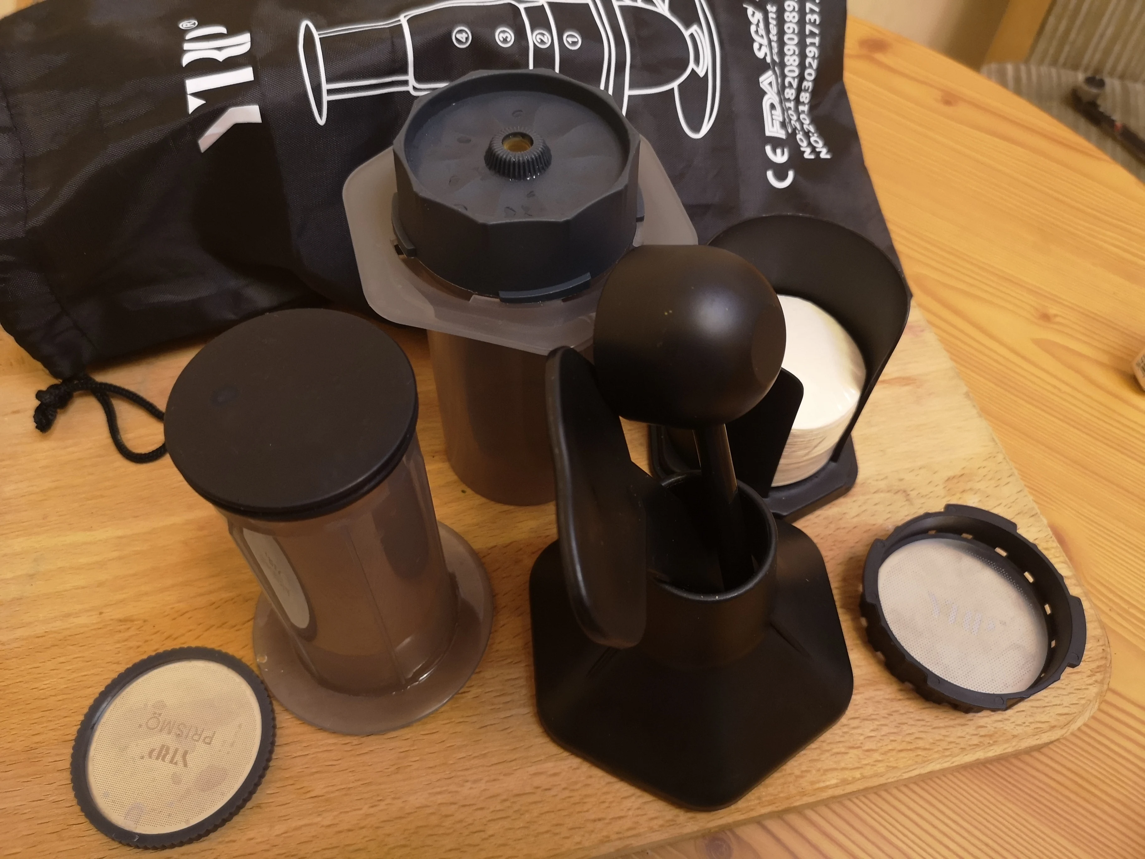 Аэропресс хорошего качества, отличный большой набор. Есть насадка под эспрессо и она даёт интересный результат. Есть небольшой запах от резинки, но на вкус кофе не влияет. Продавец просто супер коммуникабельный! Была проблема с посылкой, чтобы её решить мне позвонили из Китая и помогли с проблемой, это лучший сервис за все время пользования мной алиэкспрессом! Большое спасибо продавцу! Супер быстрая доставка! Два дня почтой России - это рекорд)