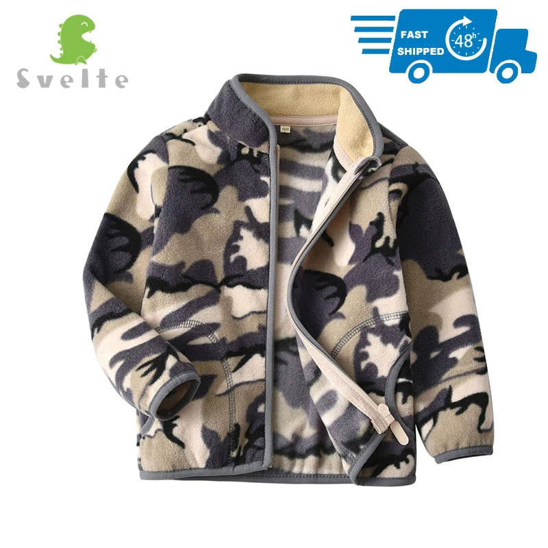 Камуфляжная флисовая куртка на молнии для мальчиков 2-10 лет