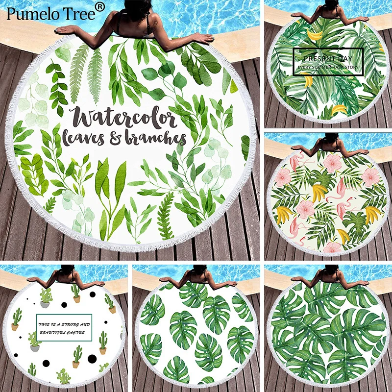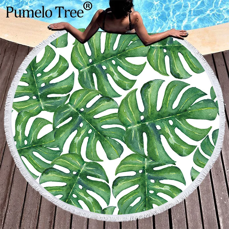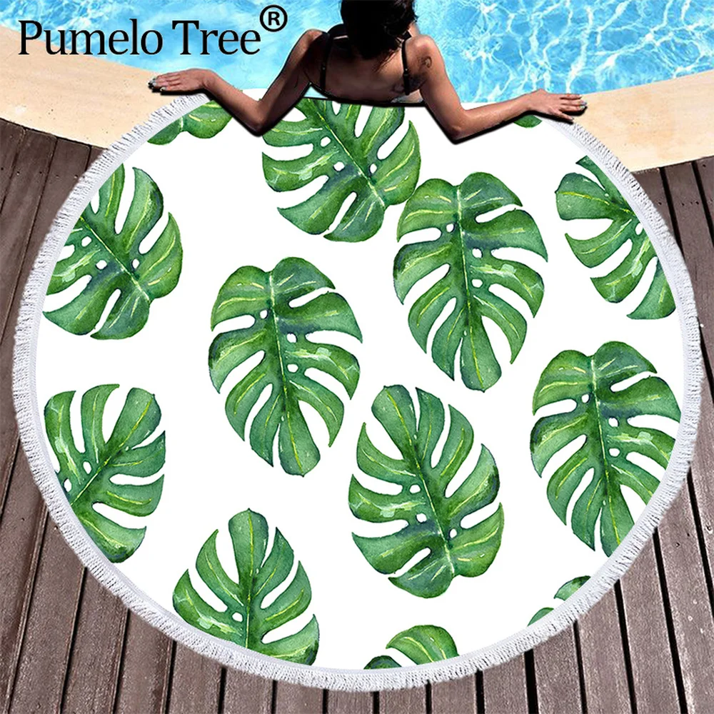Пляжные полотенца с тропическими листьями и цветочным принтом, большие круглые пляжные полотенца из микрофибры для гостиной, домашний декор, банные полотенца с растениями в стиле бохо