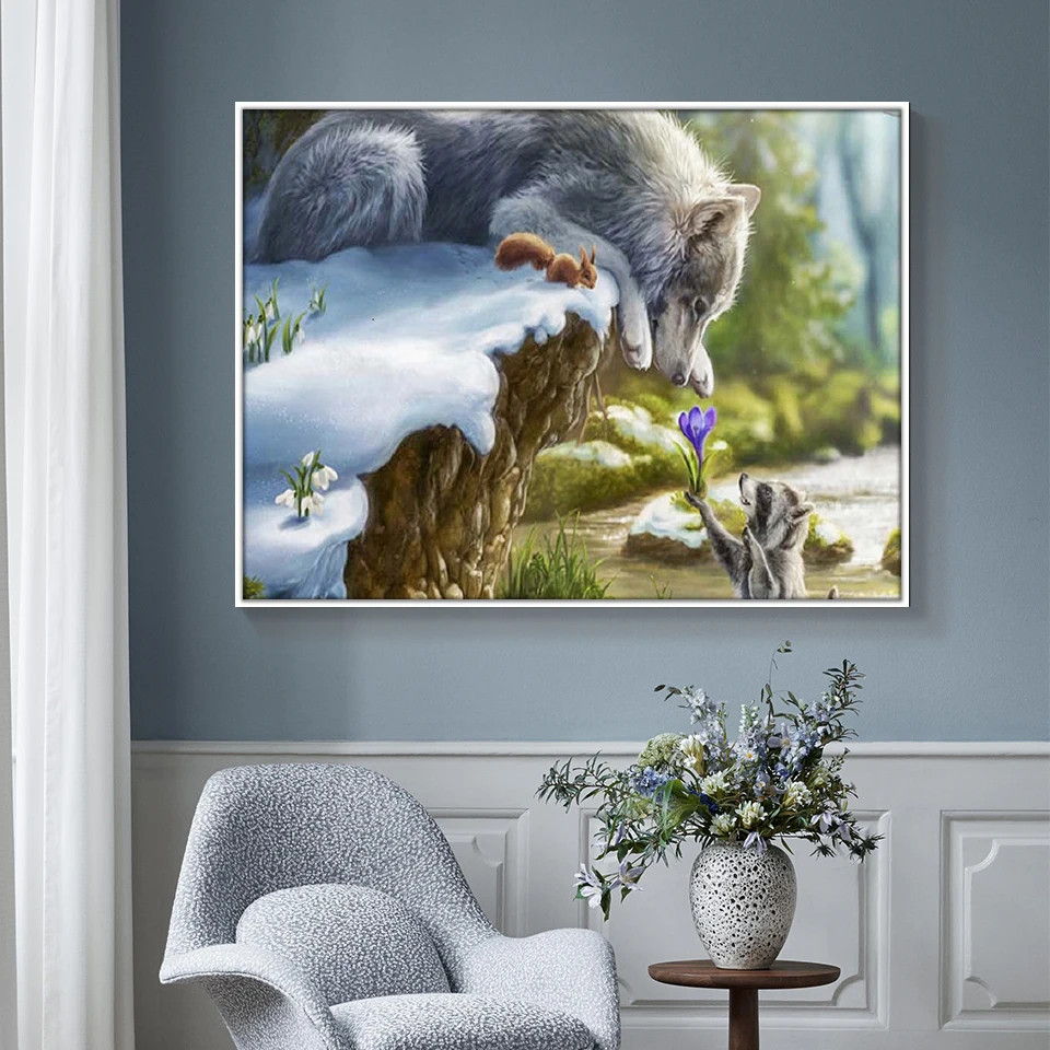 Алмазная живопись 5D с изображением волка и енота, Алмазная мозаика, круглая вышивка стразы, животное, домашний декор