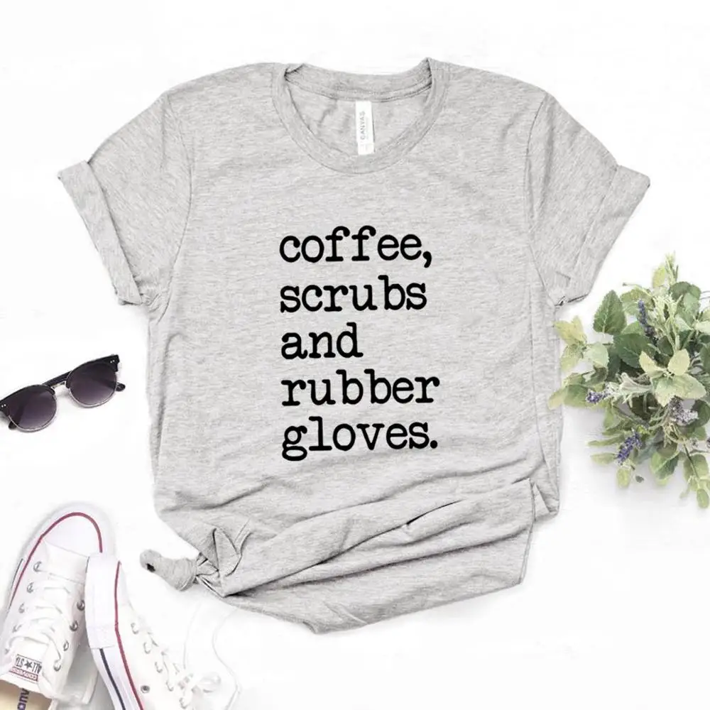 Кофейные скрабы и резиновые перчатки для женщин футболки хлопок повседневное забавная Футболка для леди верхний тройник битник 6 Цвет NA-656