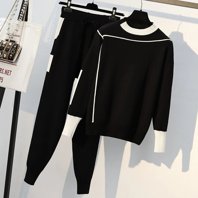 Женский свитер и штаны размера плюс, весенний комплект из 2 предмет...