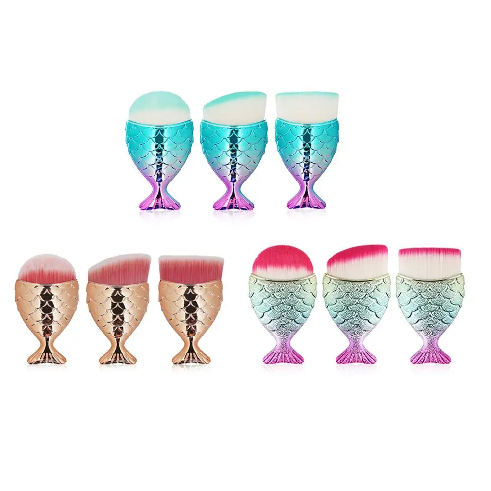 3 шт Профессиональная Кисть для макияжа в форме русалки, пудра, румяна, основа, косметика, рыбка, кисти, инструменты для макияжа, 3 цвета, кисти в форме рыбьего хвоста