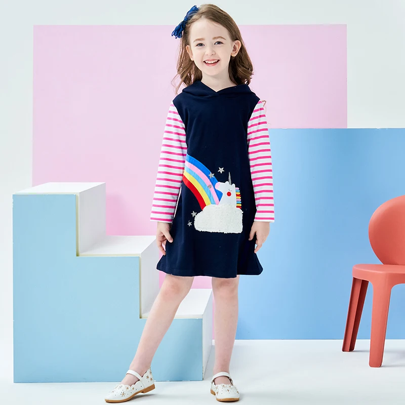 DXTON/хлопковое зимнее платье для девочек с изображением фламинго; детское платье для девочек; костюм для малышей; хлопковое платье с капюшоном для девочек; детское платье в полоску; Vestidos