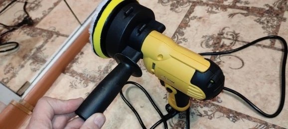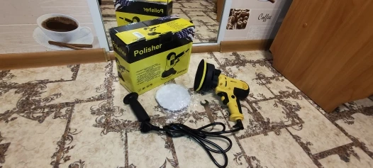 От покупки до получения 12 дней, доставка в пятёрочку, из России. Коробка прилично помятая, сама полировачная машинка не пострадала. Аппарат изготовлен на нонейм заводе, после дают названия "Kkomon" "Hilda" и т.п. на этой даже не оказалось на машинке этикетки где написаны характеристика. Сам корпус сделан не плохо из довольно хорошего пластика, черные места прорезинены, доополнительная рукоятка и кожух изготовлены из более простого черного пластика. Провод на удивление хороший толстый и мягкий, легко сгибается. У машинки обороты меняются, кнопка это типа реостата, а вот пластиковый винт в кнопке выполняет регулировку возможности глубины нажатия, тоесть меньше или больше кнопку можно продавить. Попробовал имитировать работу, нажимая на машинку, на минимальных оборотах мотор в принципе без особого труда начинает крутить. Во время работы от мотора посторонних запахов нет. Купил за 1211р. (15,8$) думаю не плохой аппарат для домашнего использования, машину полирнуть или так ещё для чего.