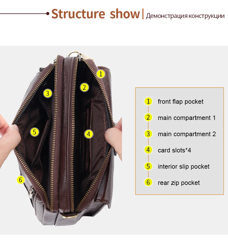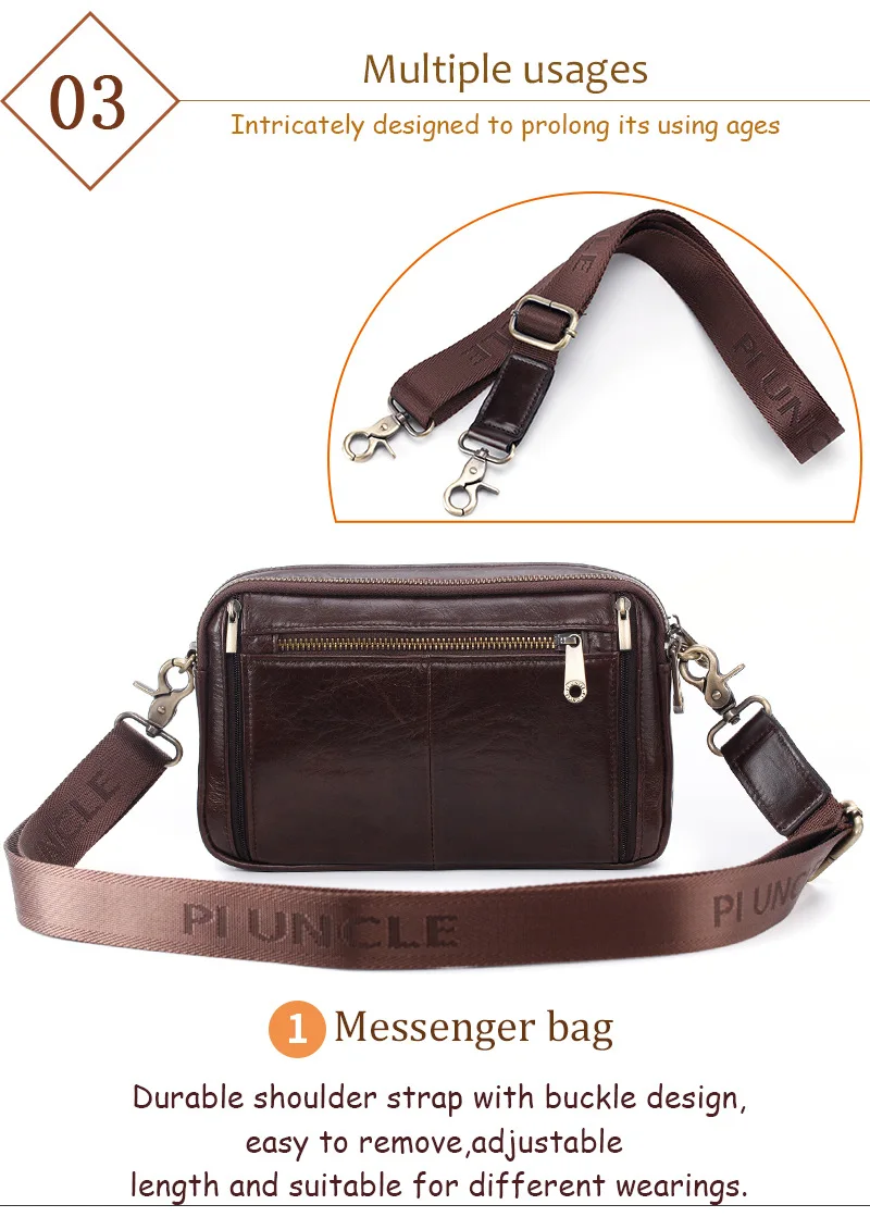 Сумка поясная мужская из натуральной кожи, многофункциональная, на плечо