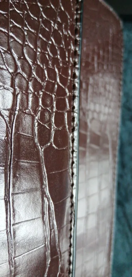 Очень хорошее качество, довольно большой, толстая искусственная кожа и сохраняет форму. Тонкий ремешок из искусственной кожи.