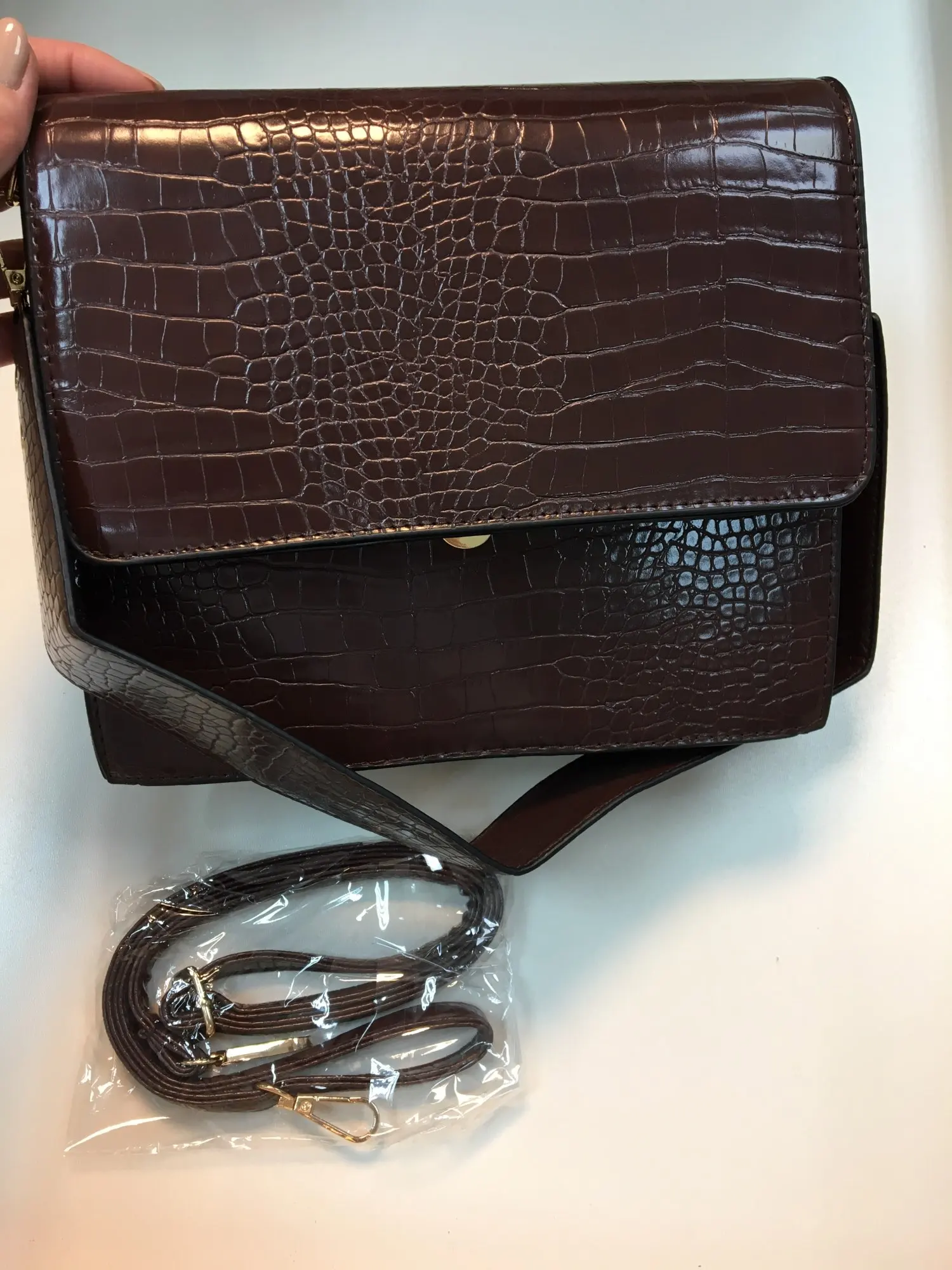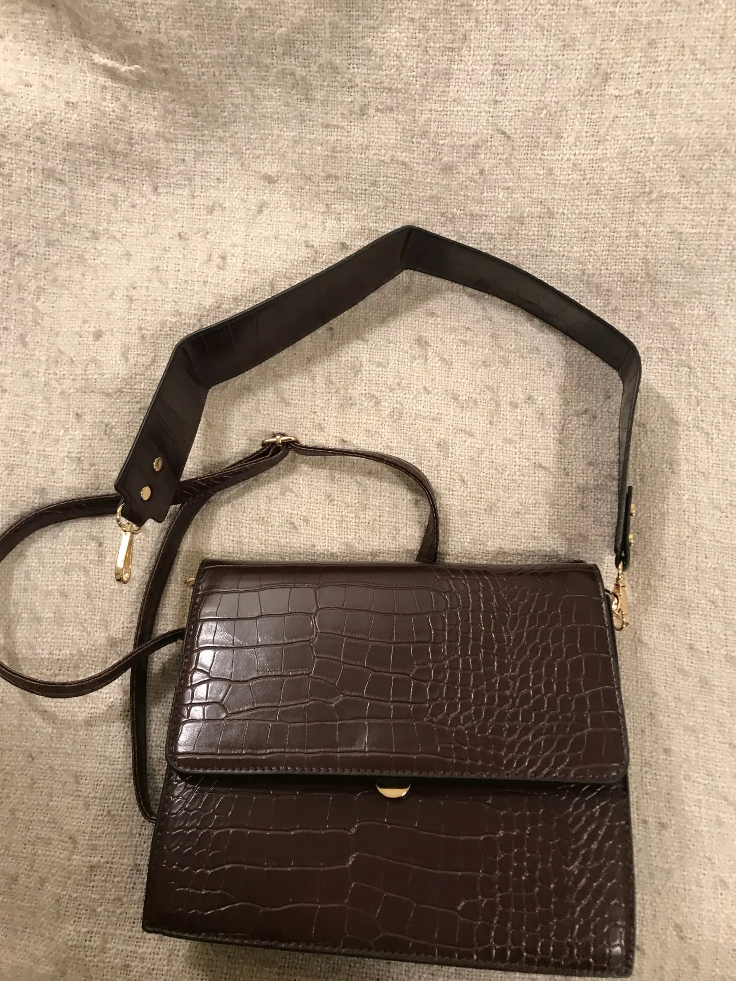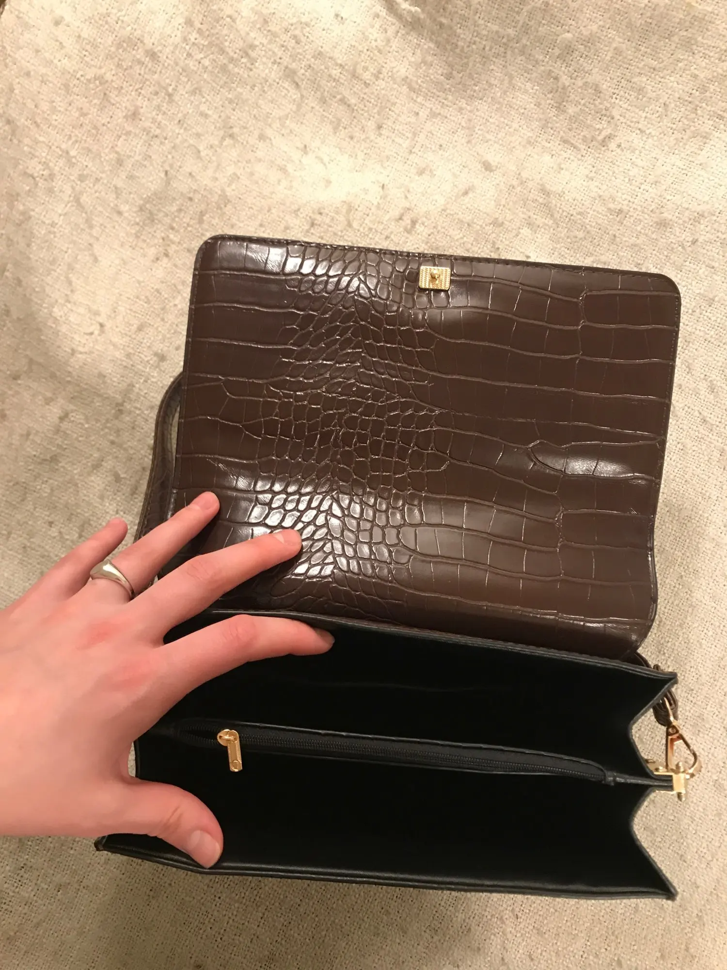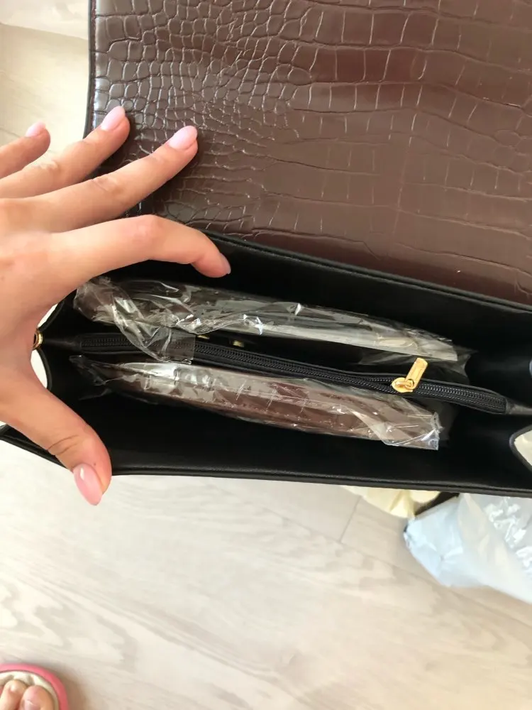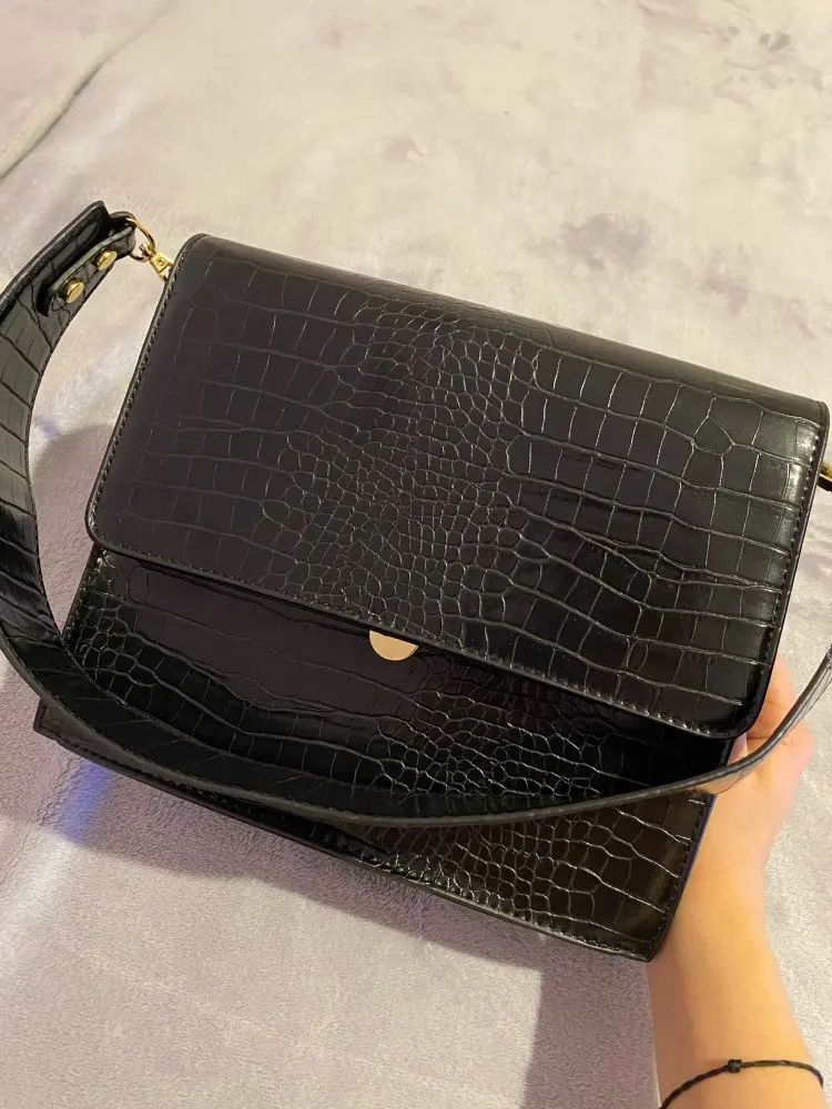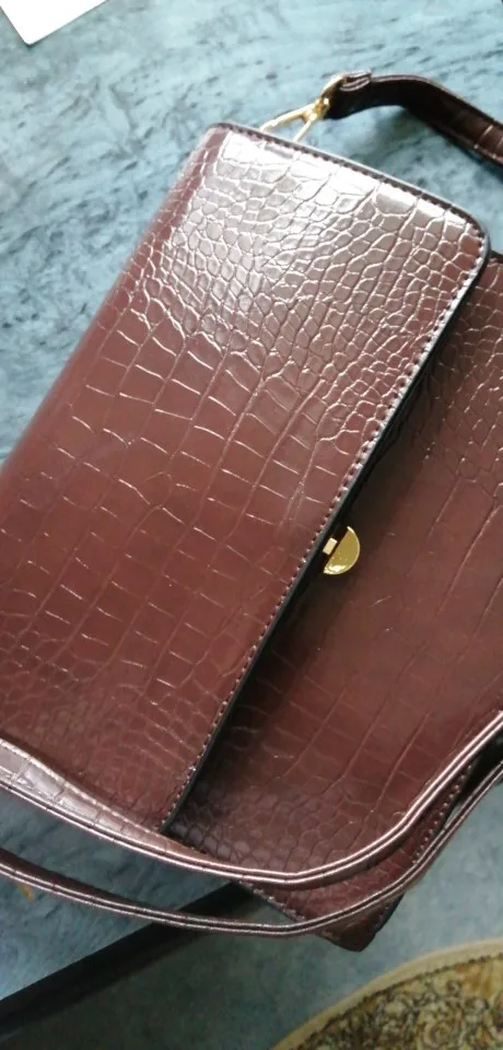 Доставка 13.11-12.12. Очень понравился фасон сумки и широкая короткая ручка, такие сейчас модные. Размер хороший, не громоздкая. Помещается большой кошелек, пару кремов, расческа, даже маленькая бутылка воды (меньше обычной 0.5). Как кроссбоди не собираюсь носить, будет выглядеть нелепо, так как она крупнее обычной кроссбоди и будет много визуальной нагрузки на зону бедер. Сумка вроде и была упакована с бумагой, но это не защитило ее от вмятины сбоку. Напихала обратно бумагу, выравнялась, но небольшой след ещё есть. Качество вроде нормальное, ручки держатся, фурнитура добротная. Защелку (спереди) не поняла, открыть легко, а чтобы закрыть сложно, на ходу это не сделаешь. Лучше было бы сделать обычный магнит. В общем, рекомендовать могу, но прям какой-то огненной феерии не случилось (почему-то думаю, что будут быстро стираться ручки). В масс-маркете она будет втридорога, поэтому лучше уж взять на Али и не переплачивать сильно. Если бы нашла такую кожаную - купила бы и всю жизнь носила.