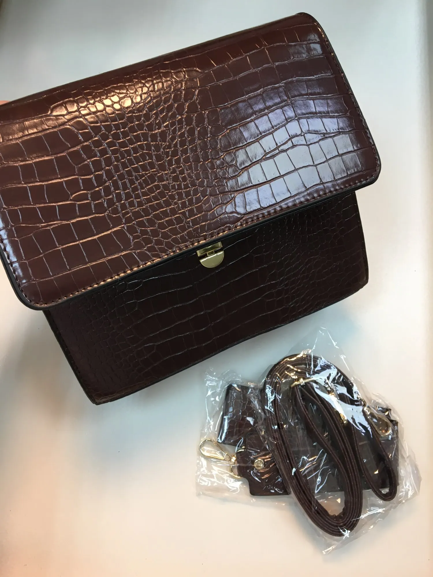 сумка выглядит очень дорого.качество на высоте: ничего не торчит, запаха нет. пришло 2 ремня: тонкий (регулирующийся) и широкий. всё приходит в хорошей упаковке. вмещается тетрадка формата А5.