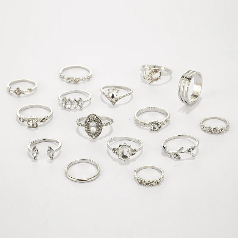 15 шт.компл. женское богемное винтажное геометрическое кольцо Страз...