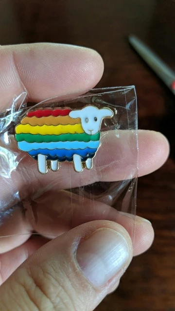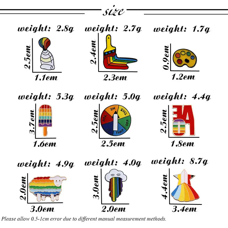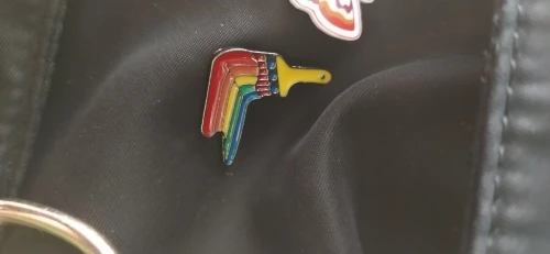 Радужная расцветка в виде облаков, веселая! Булавка отличная. Он имеет металлическое основание и яркие цвета эмали. Быстрая доставка.