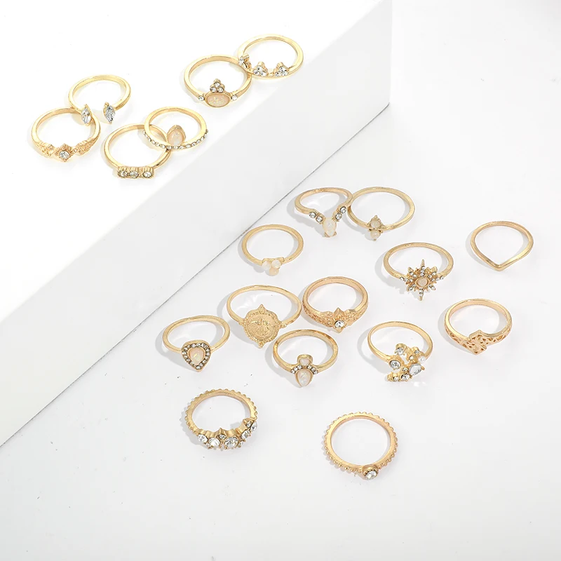 Tocona 19 шт.компл. богемные золотые кольца с солнцем значок в виде капли воды женское Ювелирное Украшение Anillos Mujer 8903