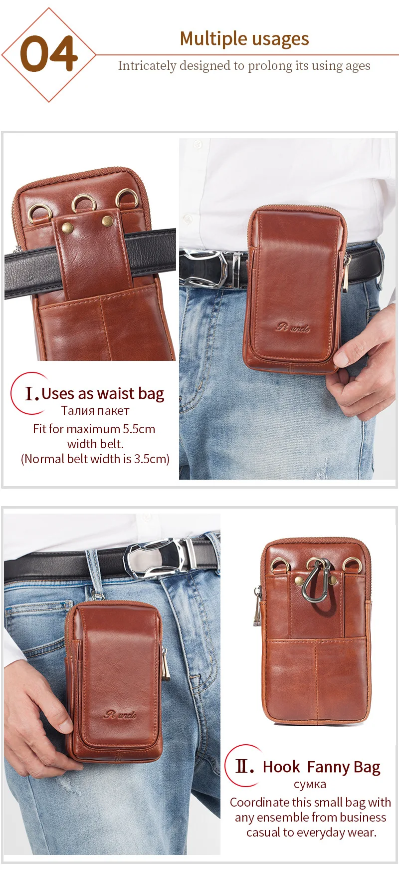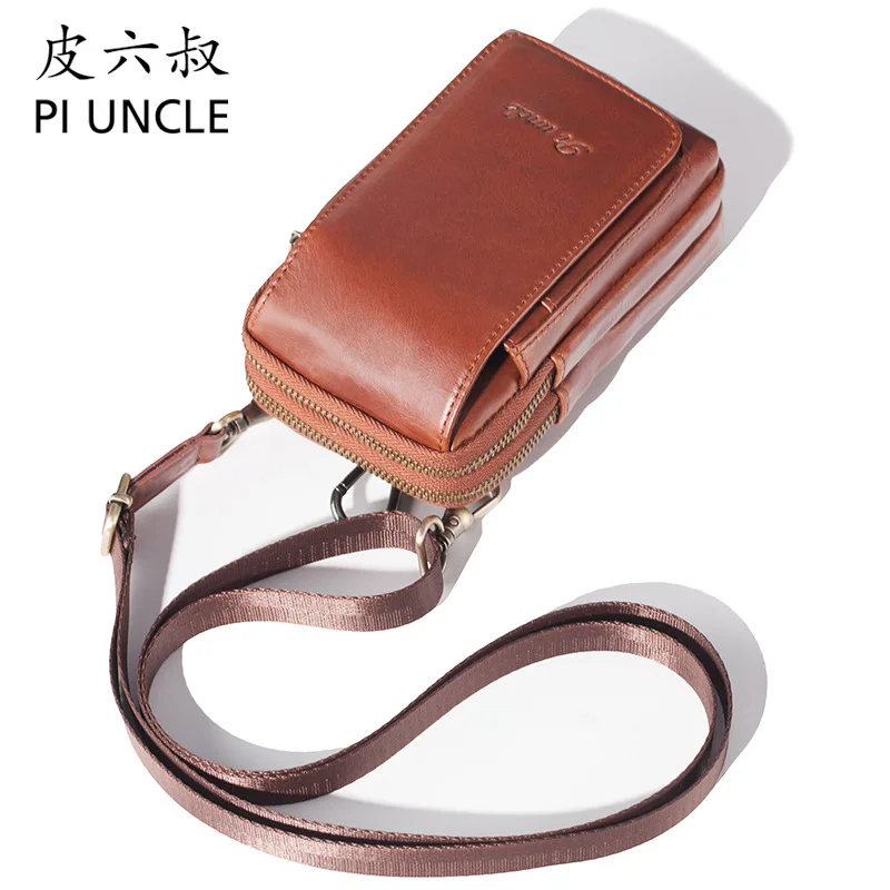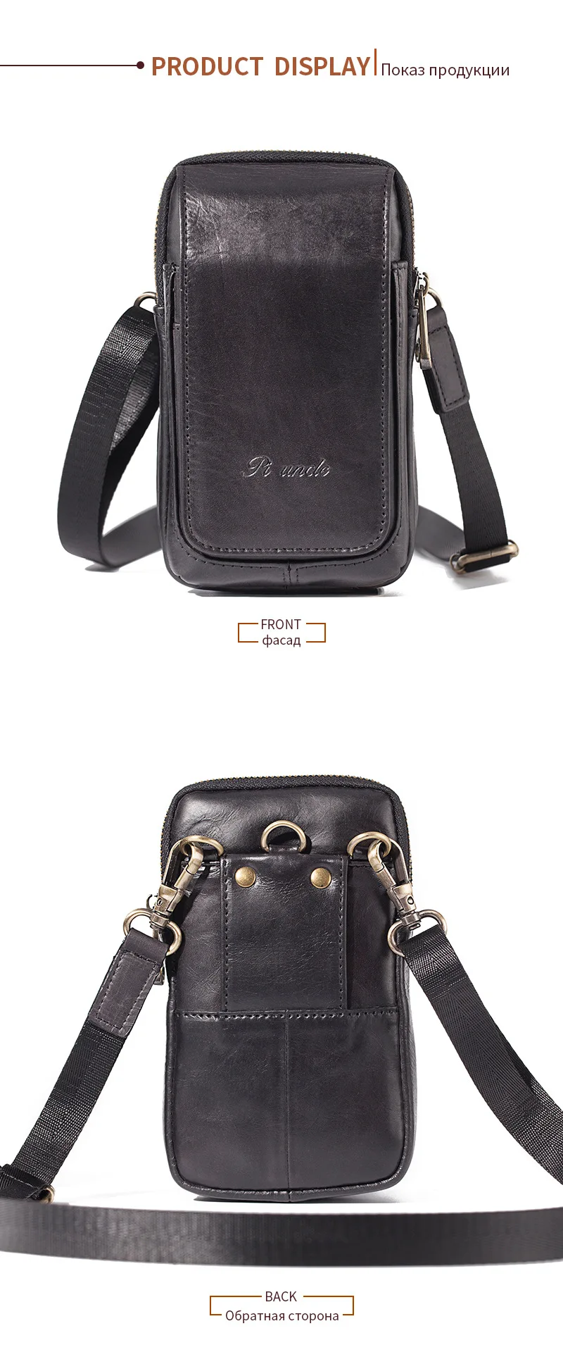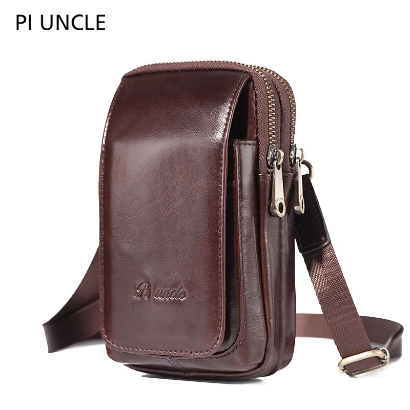 Мужская поясная сумка-мессенджер из натуральной кожи, 6 дюймов