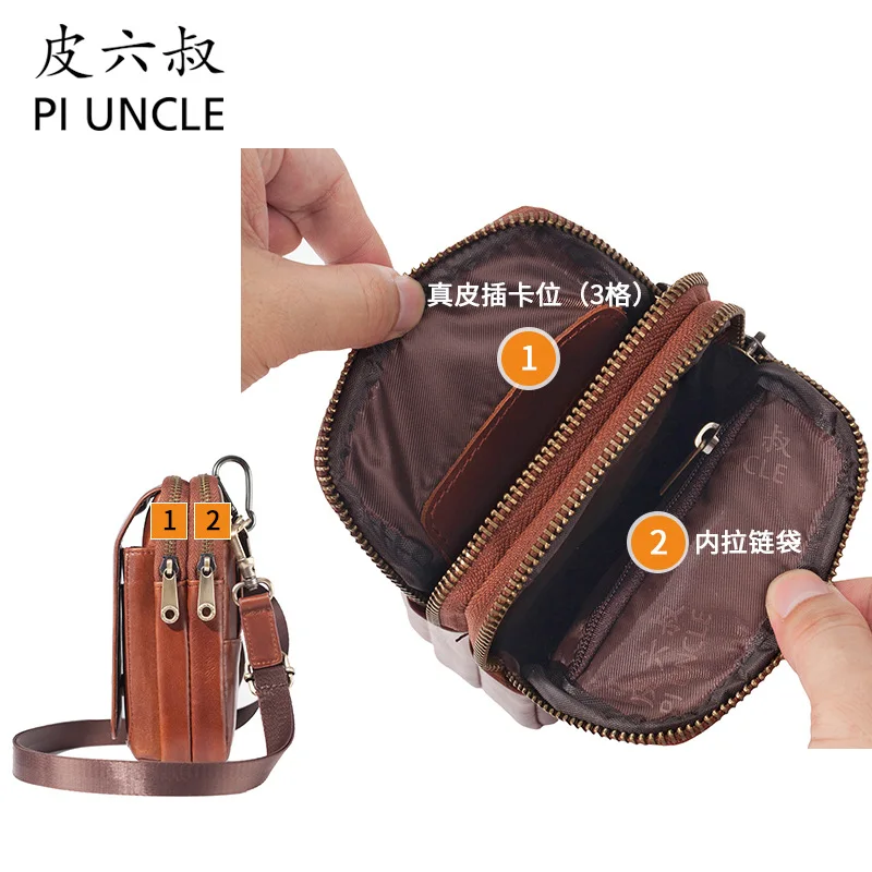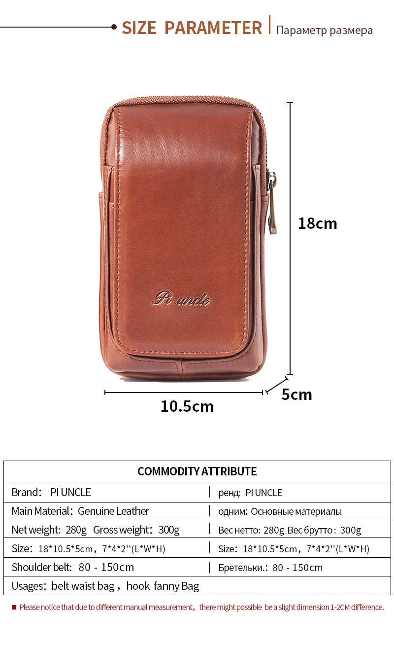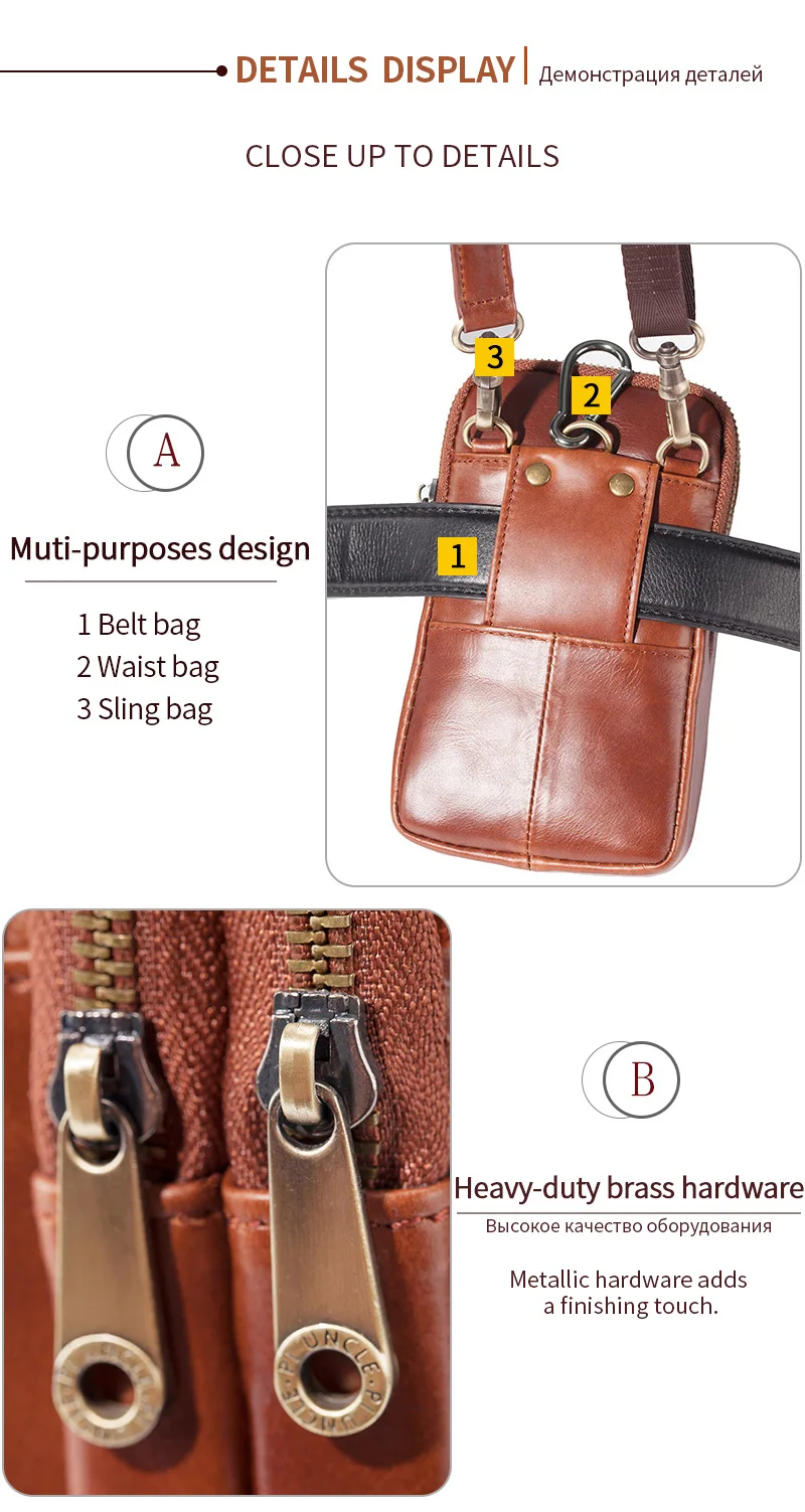 Мужская поясная сумка-мессенджер из натуральной кожи, 6 дюймов