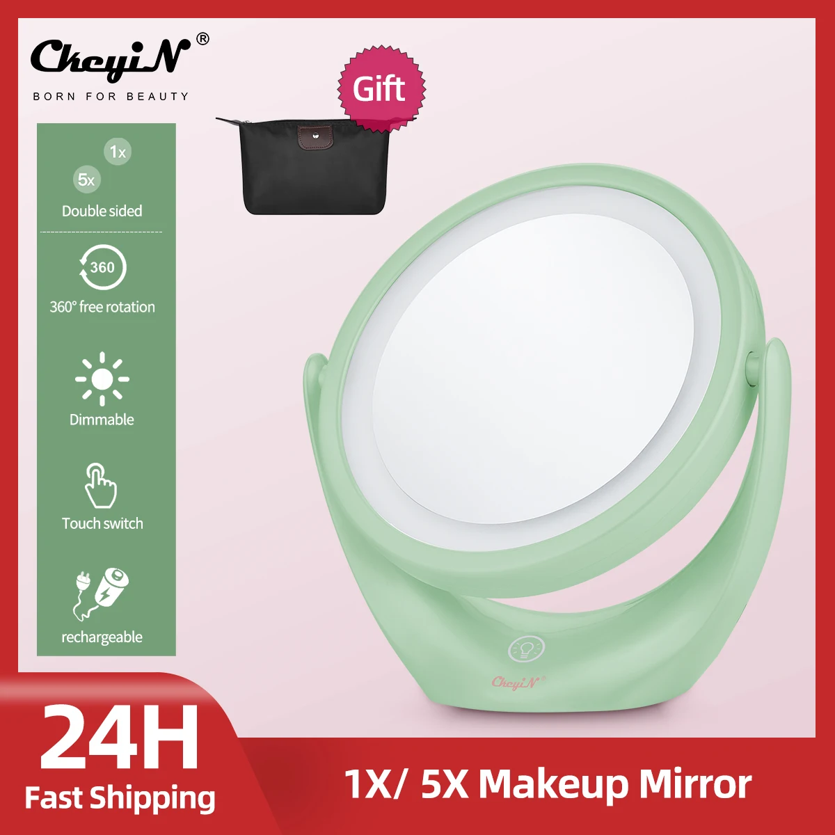 Зеркало для макияжа CkeyiN, с зарядкой от USB, с 5-кратным увеличением