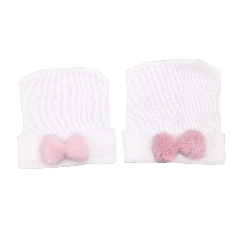 Шапки из искусственного меха для новорожденных мальчиков и девочек, для детей 0-3 месяцев, с бантом, вязаные шапочки с бантом и шапки, подарки для фотографирования новорожденных, шапочка для больницы