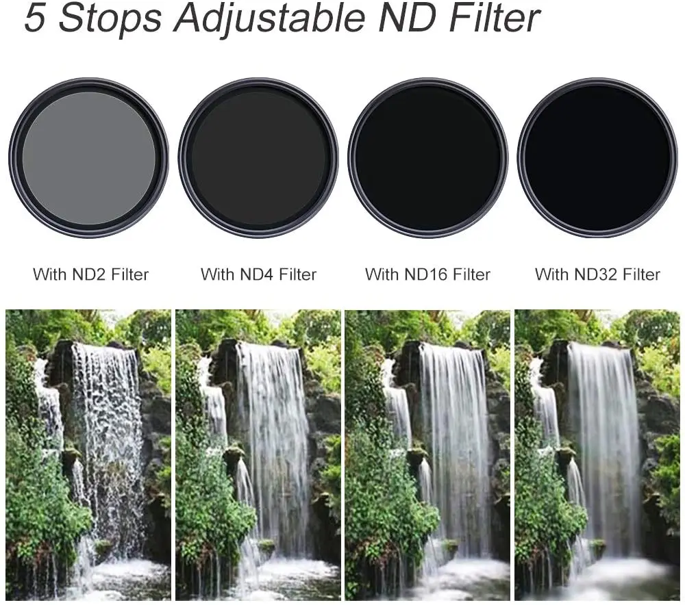 Нейтральную плотность можно регулировать от 2 до 5 стопов, легко создавать различную нейтральную плотность, вращая кольцо. Передний диаметр больше заднего диаметра этого фильтра, который специально разработан, чтобы избежать виньетирования при широкоугольном объективе. Позволяет использовать медленные скорости затвора с высокоскоростной пленкой или цифровыми камерами для записи движения/размытия изображения на объектах. Уменьшите глубину резкости, используя более широкие отверстия, что помогает отделить предметы от их фона.