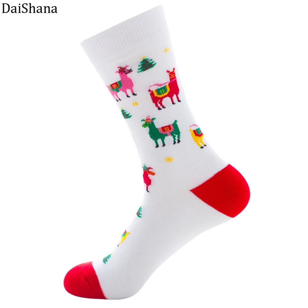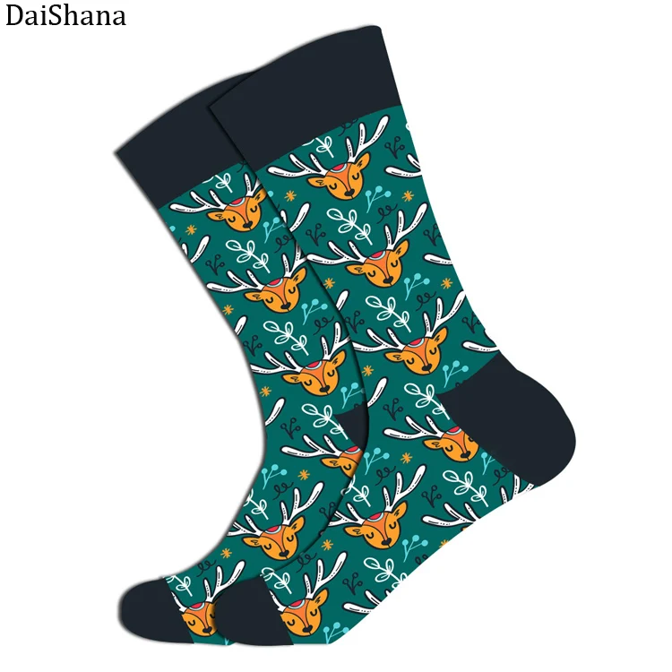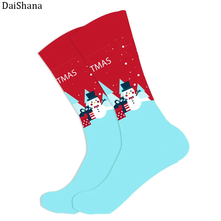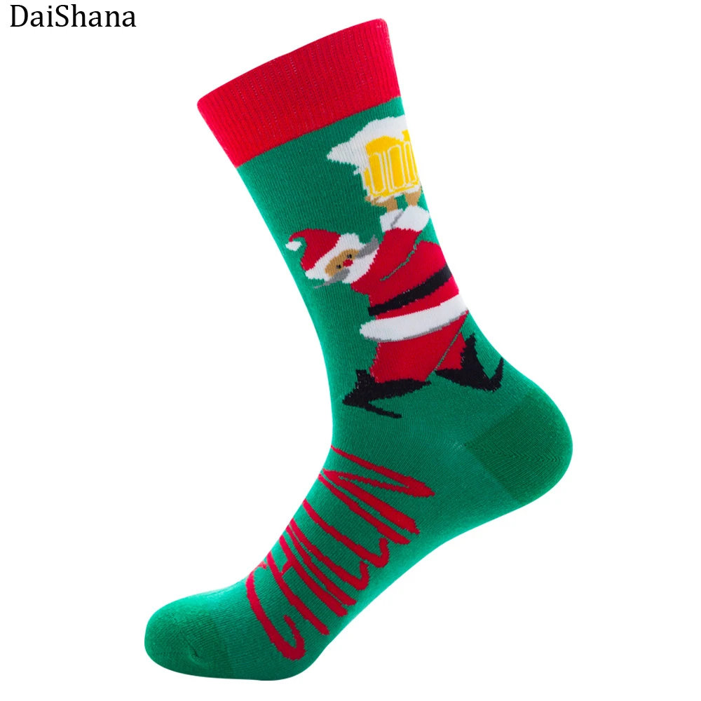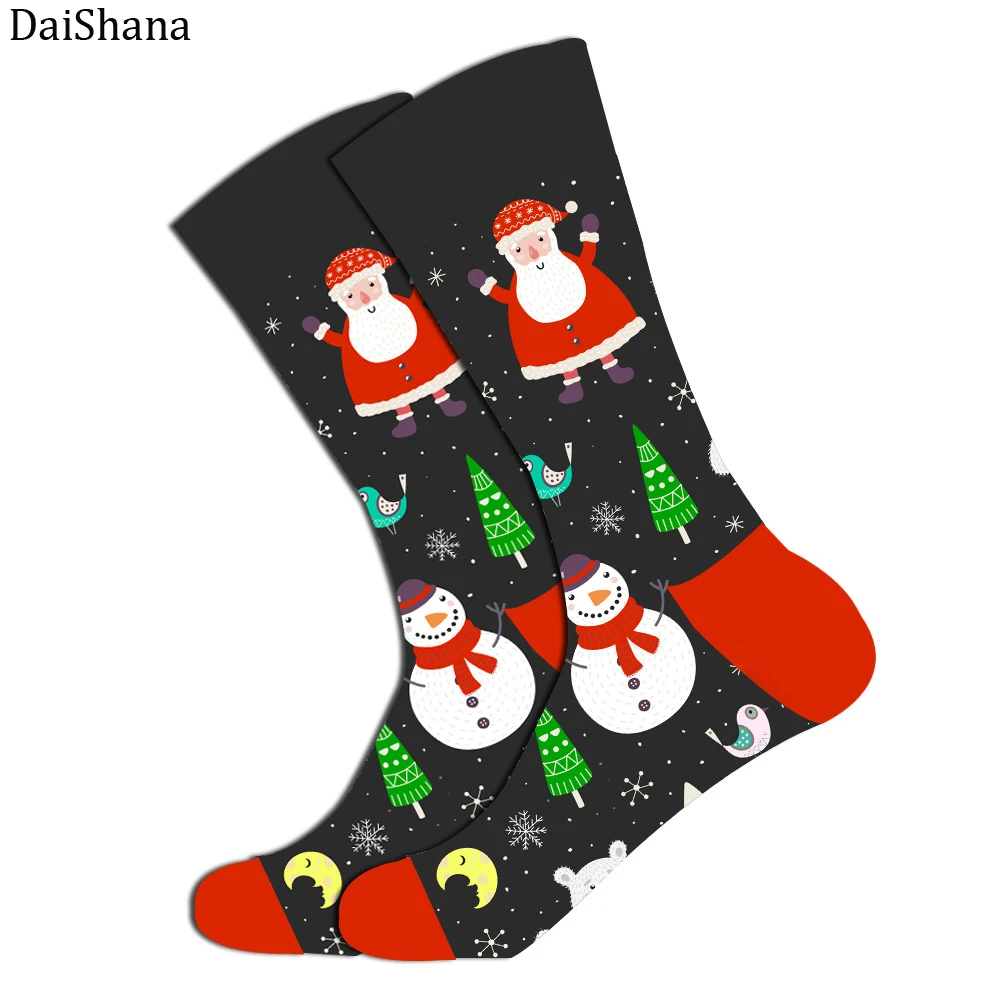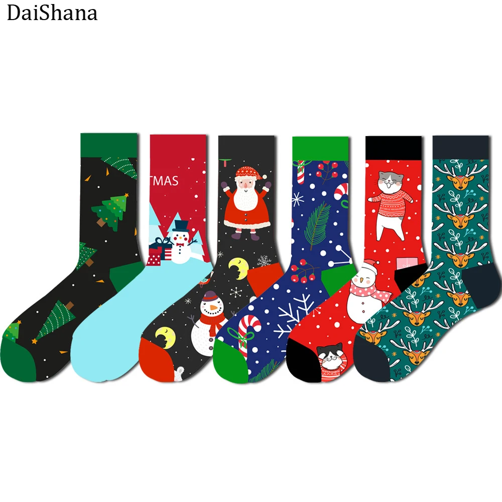 Хлопковые рождественские носки, унисекс, на осеньзиму, с дедом морозом, рождественской елкой, с изображением снежного лося