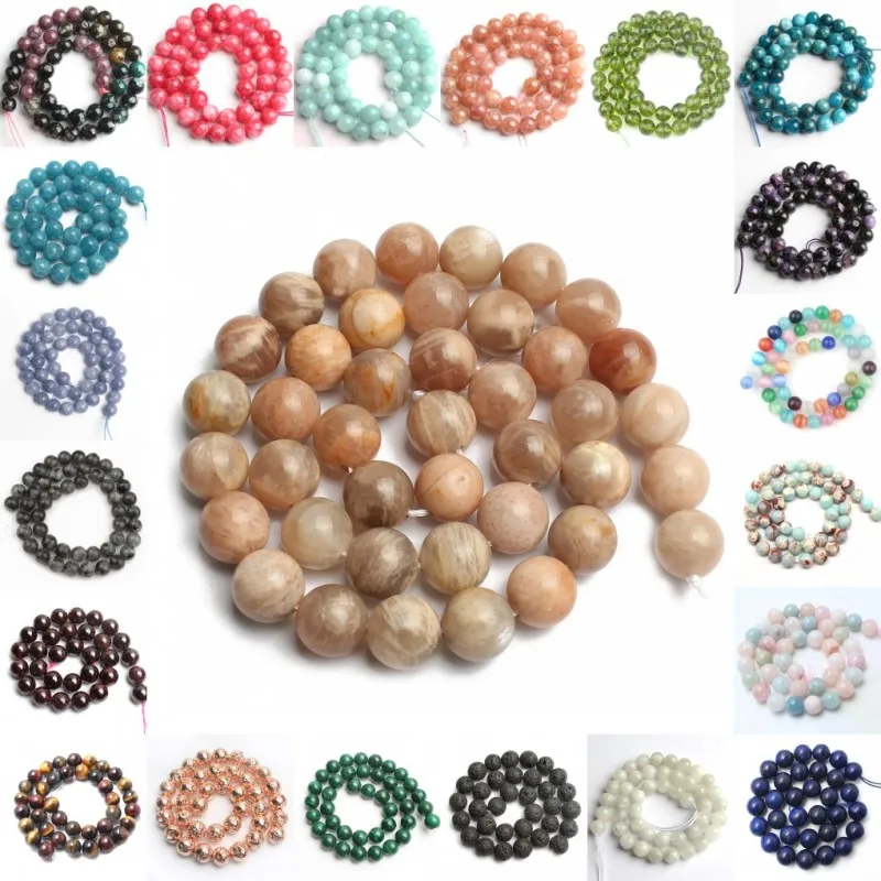 Браслет из натурального агата, граната, амазонита, ангелита, лунного камня, чароита, тигрового глаза, круглые бусины для самостоятельного изготовления ювелирных изделий, 15 дюймов