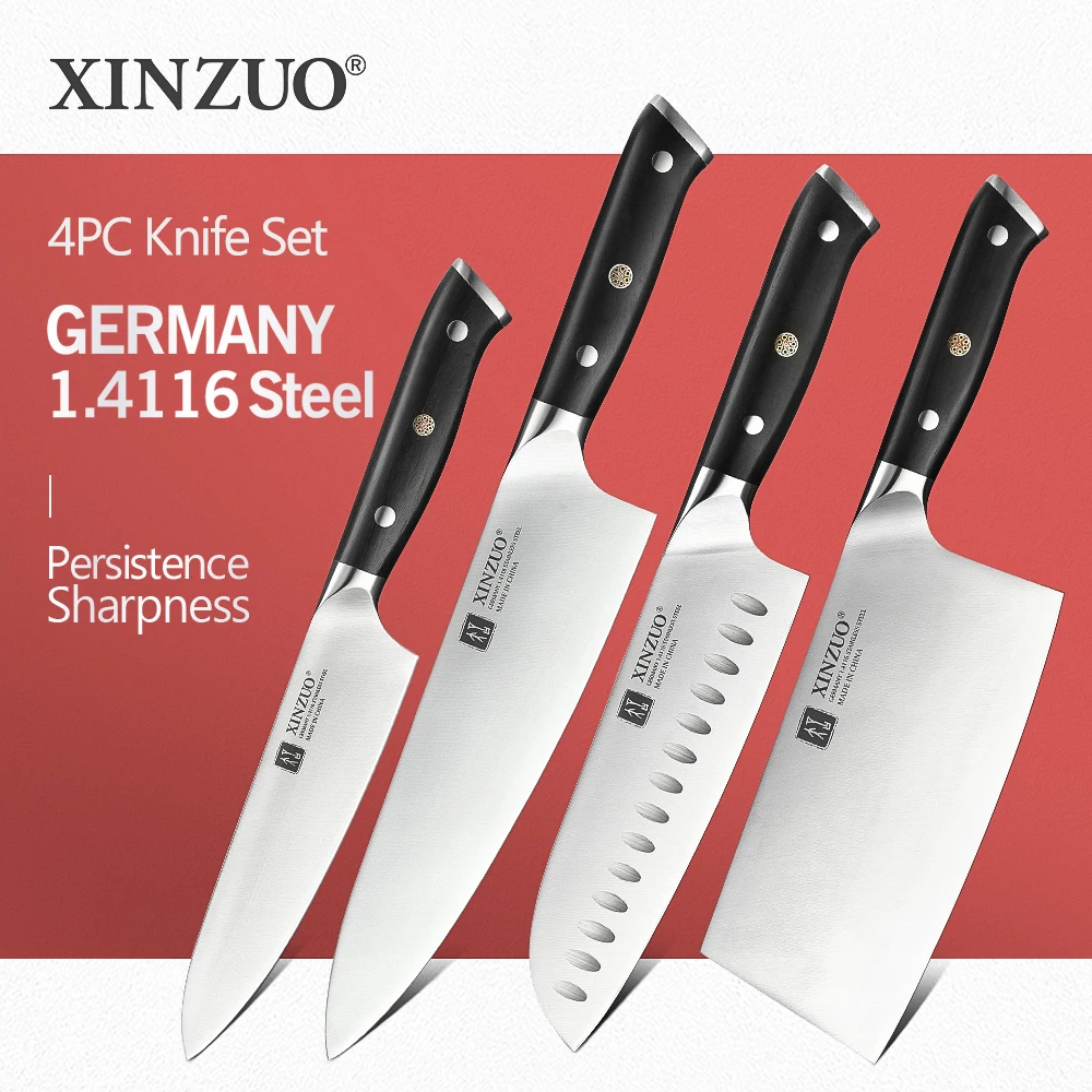Набор кухонных ножей XINZUO, комплект из 4 предметов, шеф-повар, чистящий механизм, сантоку, инструменты для приготовления пищи из нержавеющей стали, кухонные принадлежности