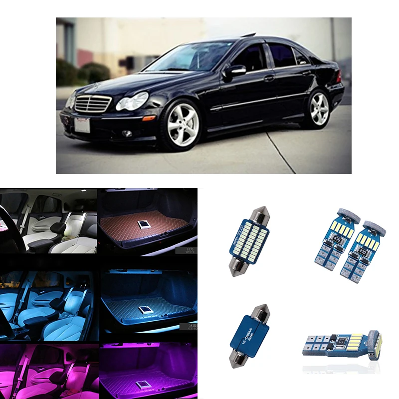 11 шт.компл. светодиодный внутренний светильник с can-bus T10 гирлянда светильник s аксессуары купол для чтения карты двери лампа подходит для mercedes w203 2001-2007