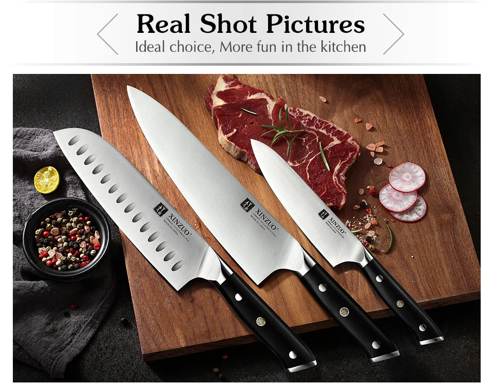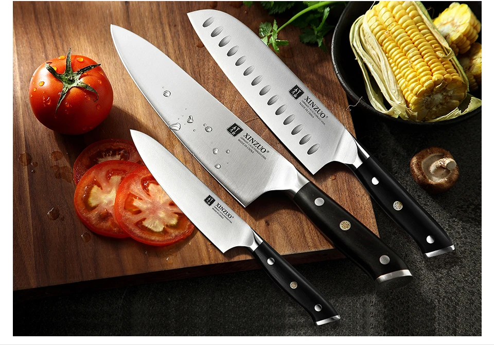 Набор кухонных ножей XINZUO, профессиональные универсальные инструменты из немецкой нержавеющей стали 1,4116 8 дюймов, шеф-повар 7 дюймов Satoku 5 дюймов, 3 шт.