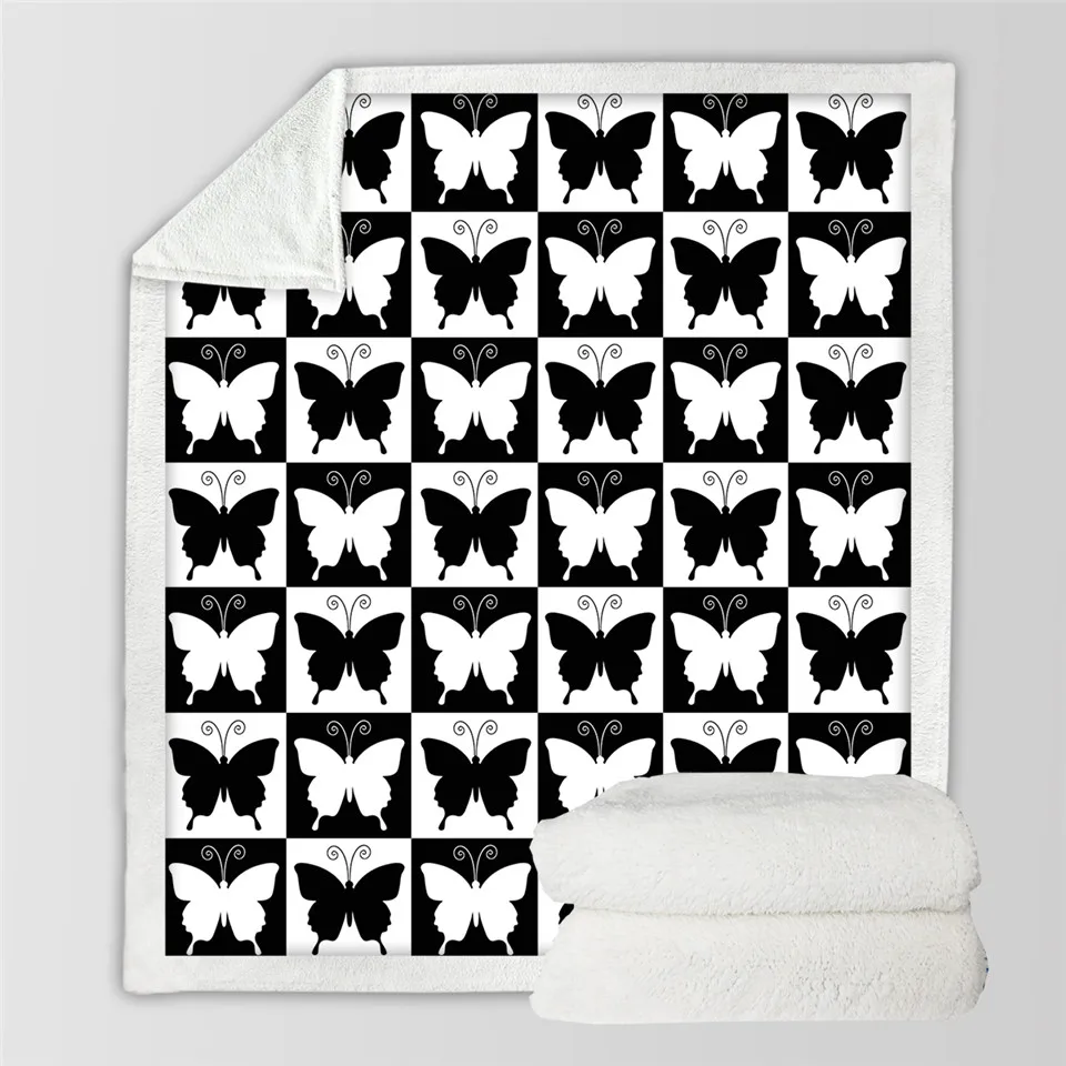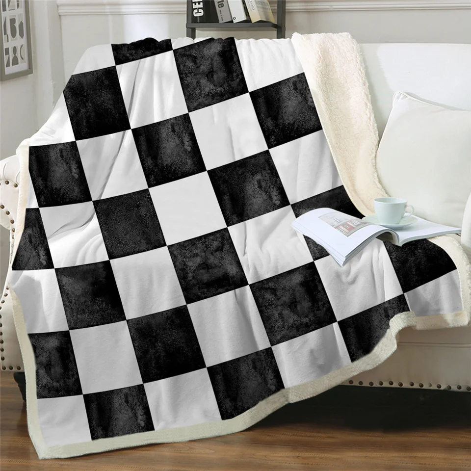 Плед BeddingOutlet для шахматной доски, черно-белое плюшевое покрывало, игровые квадраты, мягкое одеяло из шерпы для мальчиков-подростков