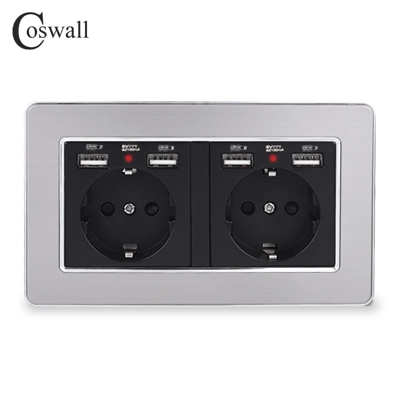 COSWALL бренд 2 Gang Россия Испания телефон с 4 USB-портами для зарядки скрытый мягкий светодиодный индикатор рамка из нержавеющей стали
