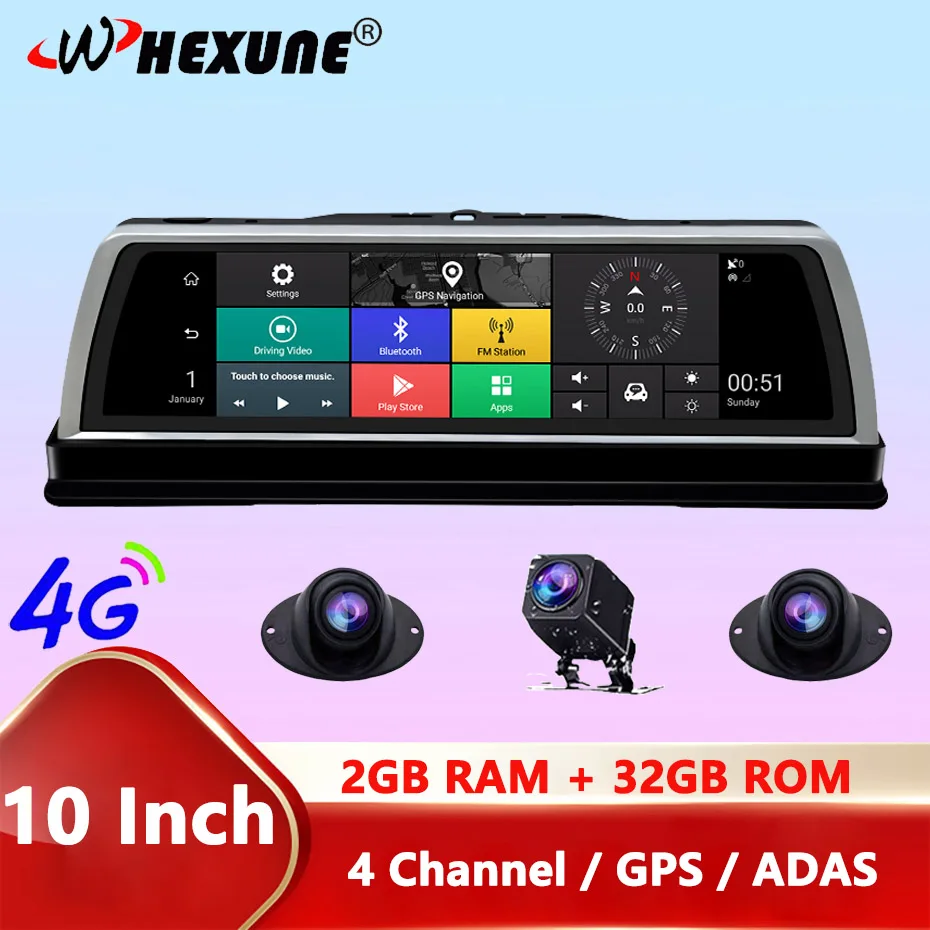 Видеорегистратор автомобильный, 4G, ADAS, GPS, Wi-Fi, 10 дюймов