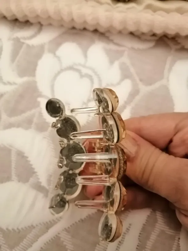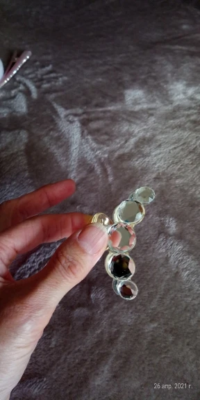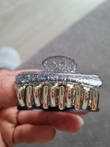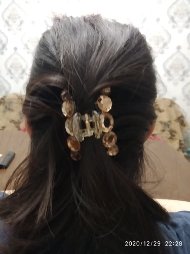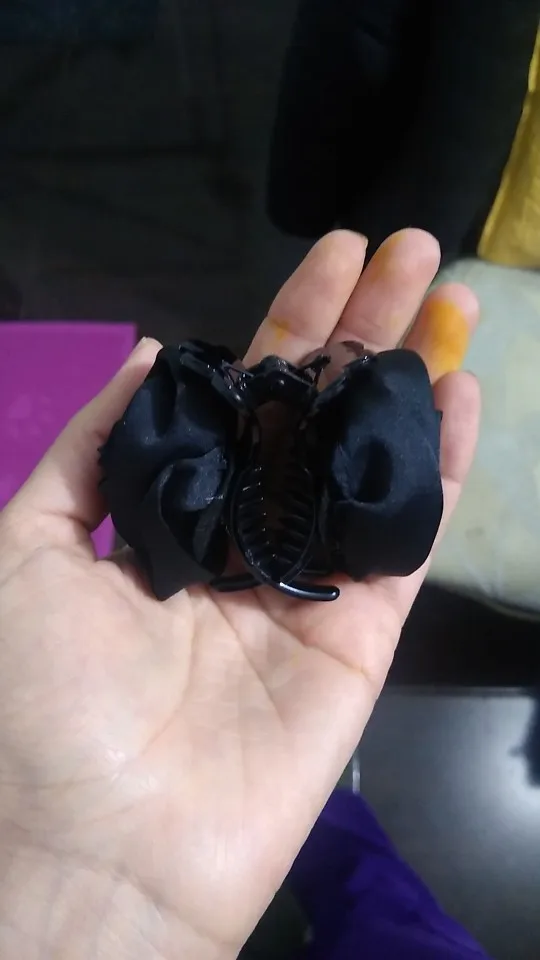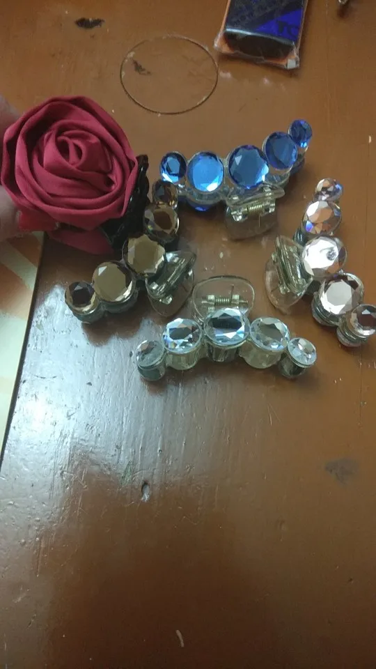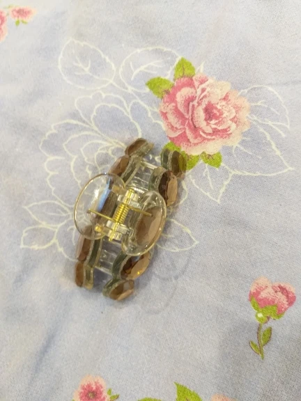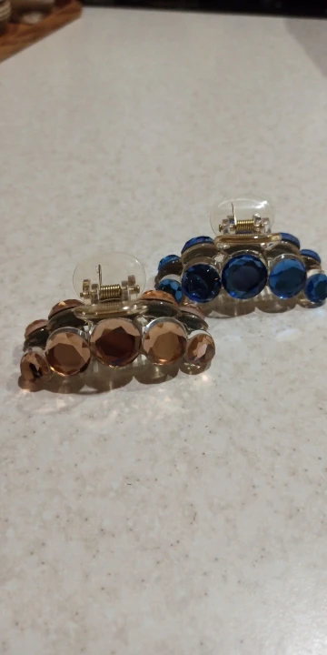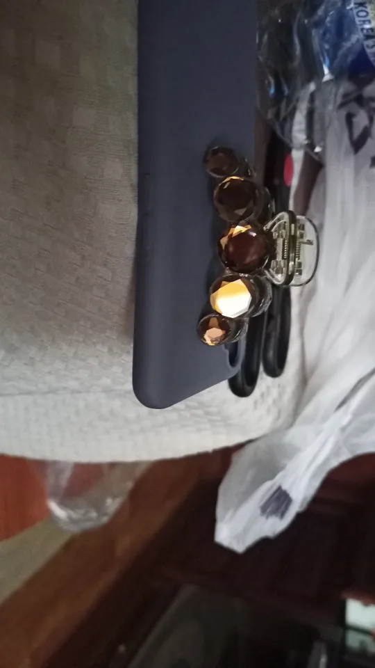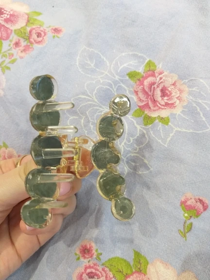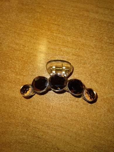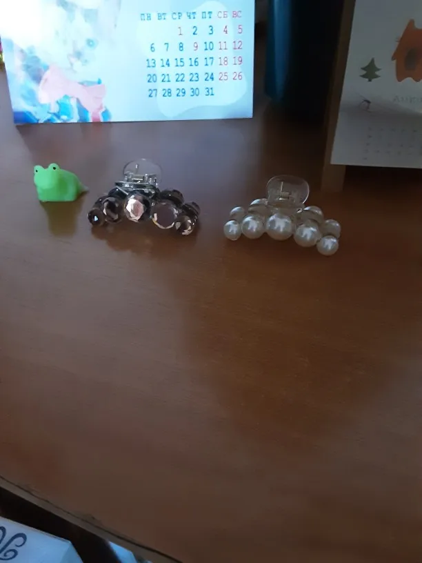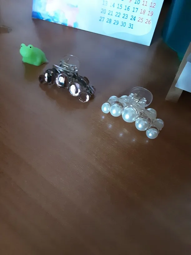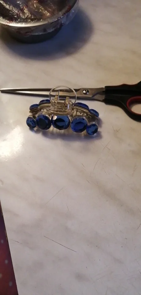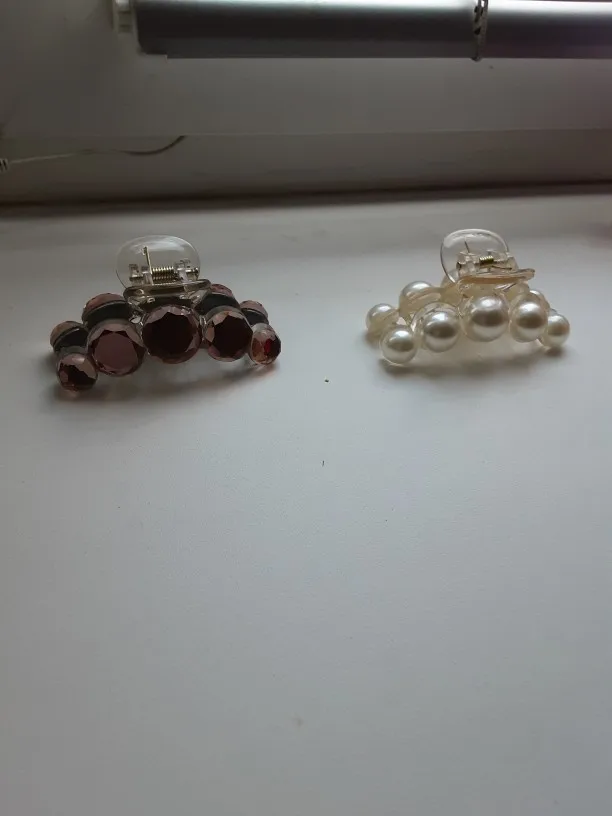 Заколка меньше , чем ожидала, но на небольшой объем волос подойдет. Сбоку у камешков неаккуратная обработка. Издали не видно, но качество страдает..