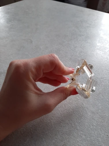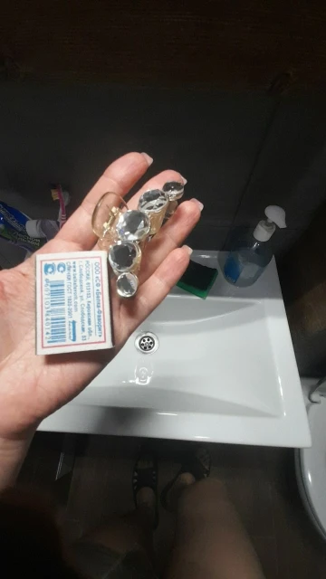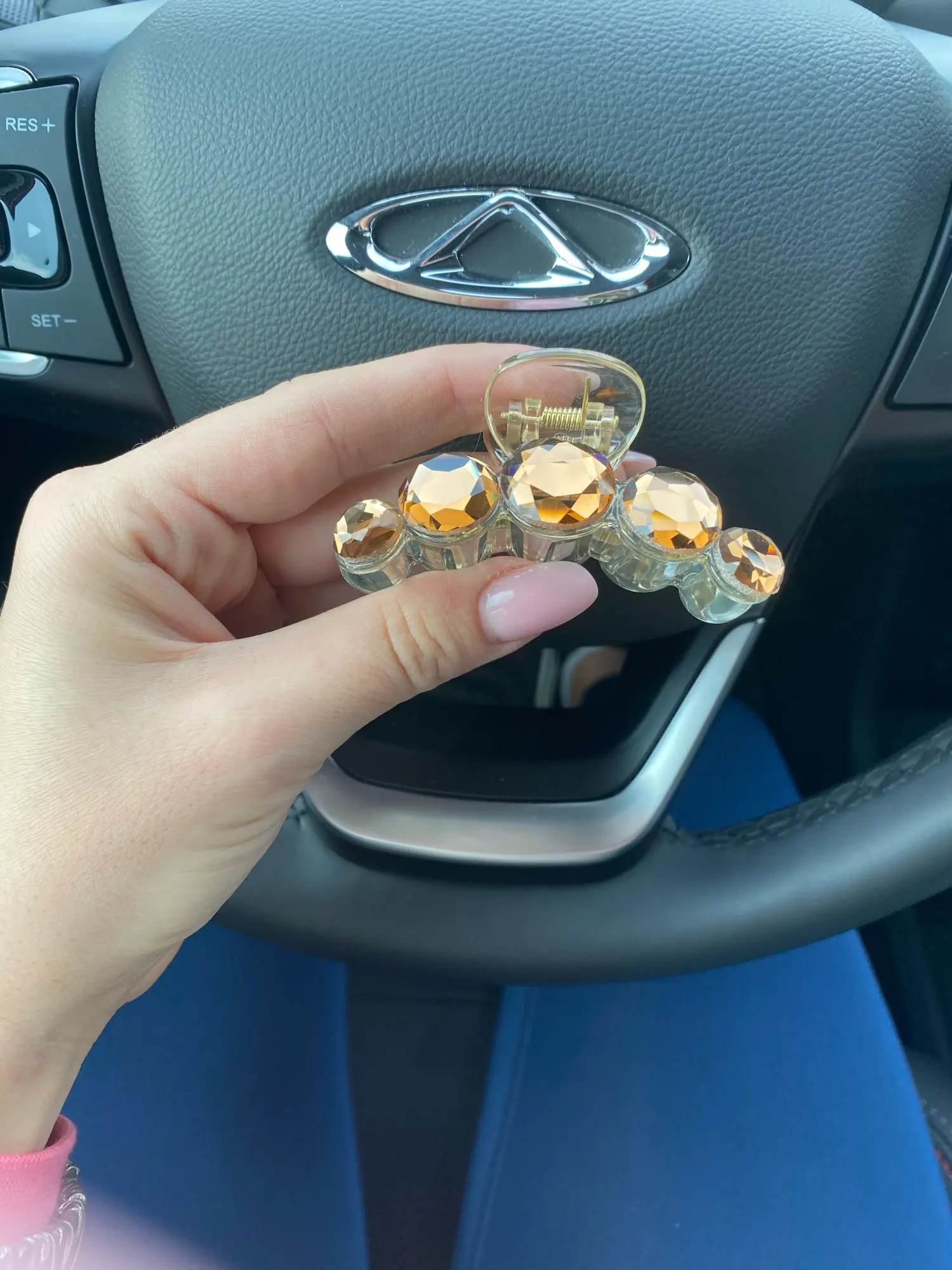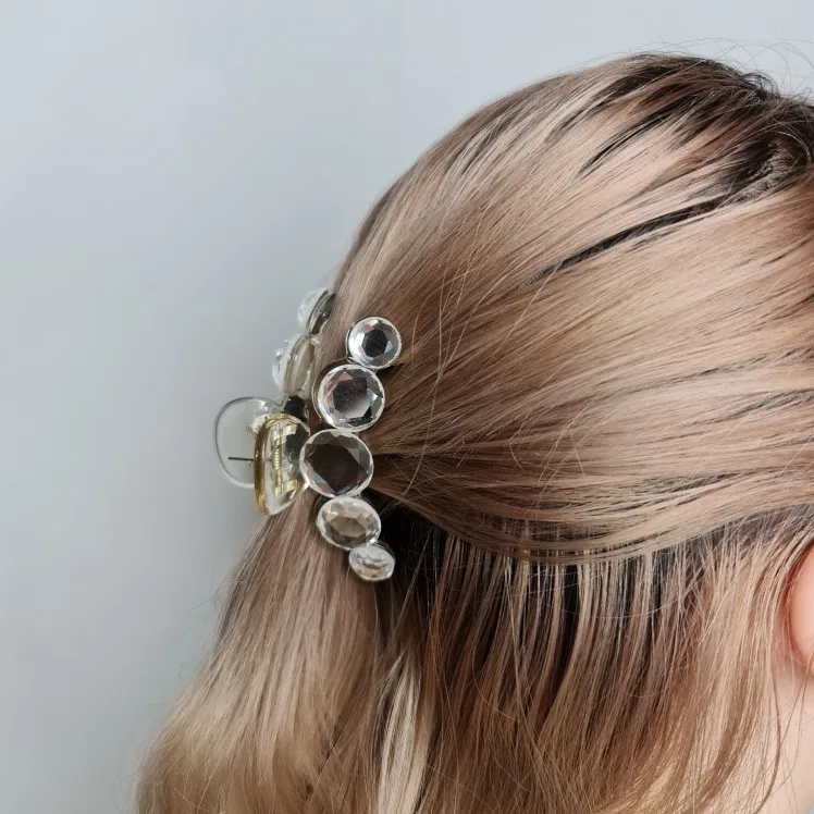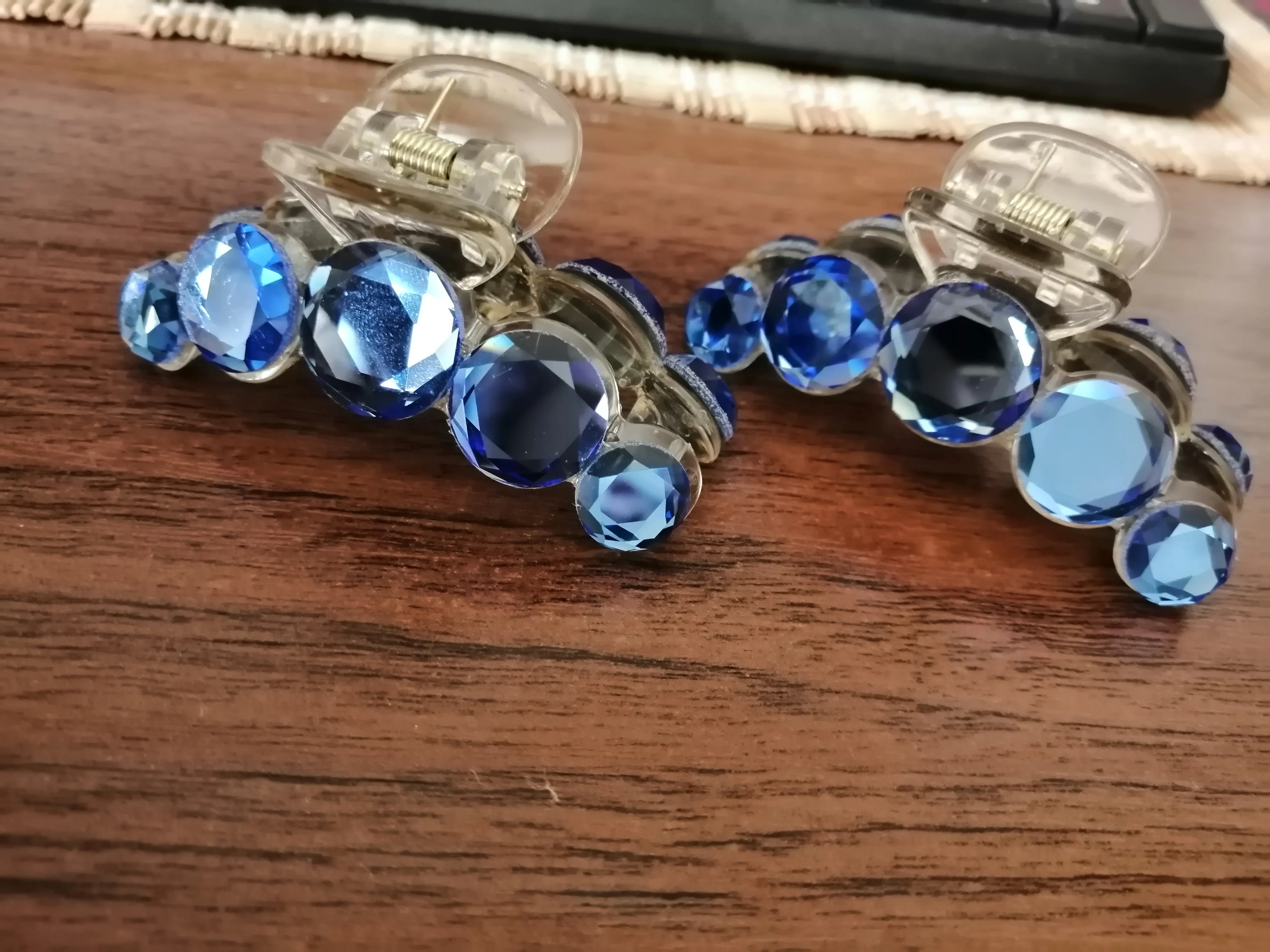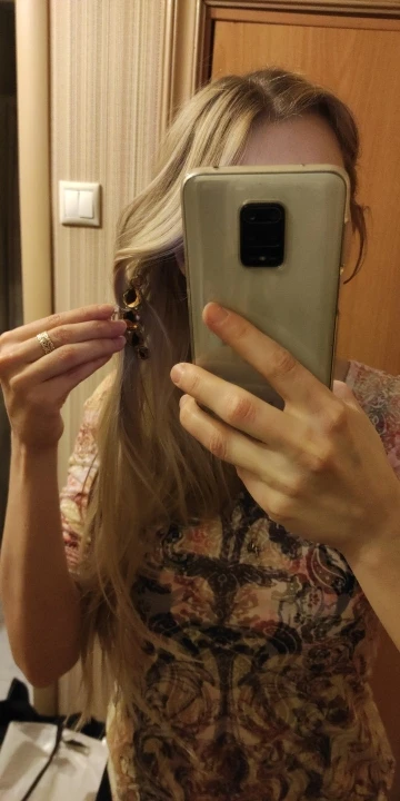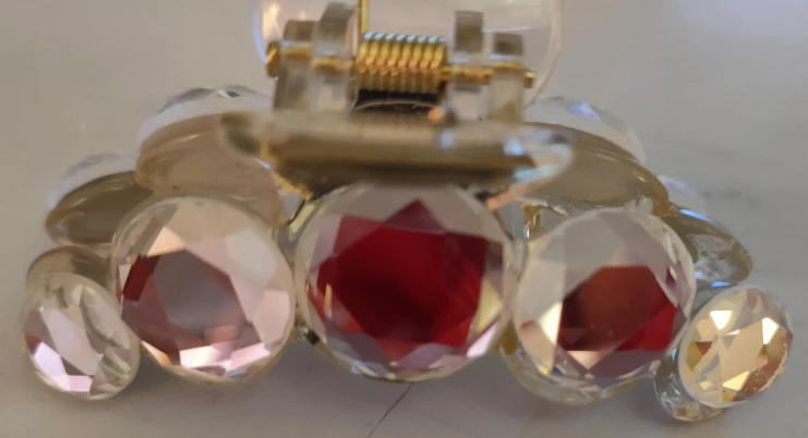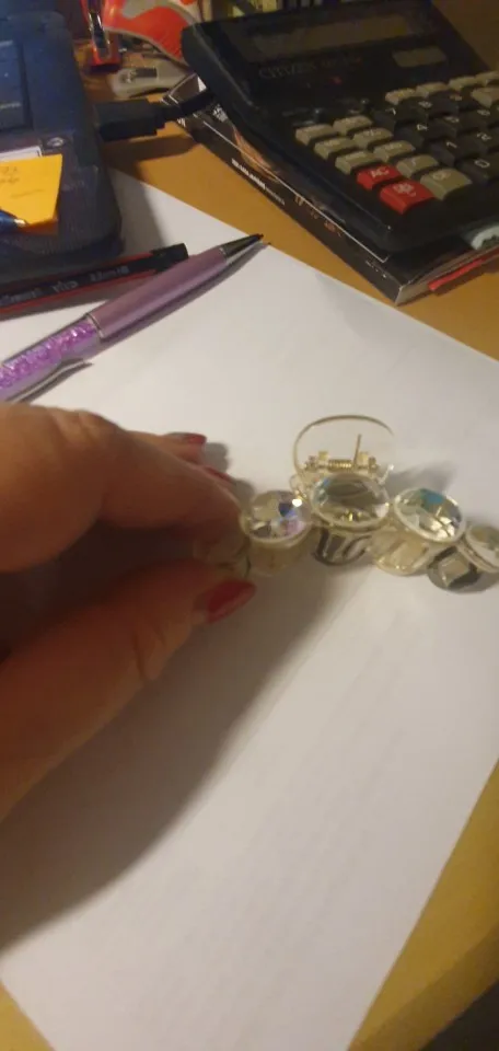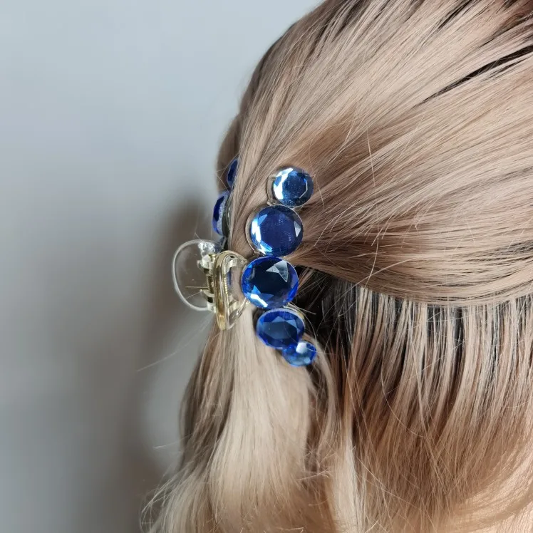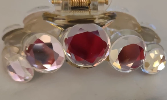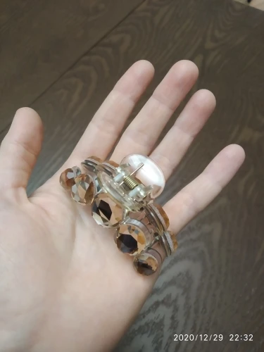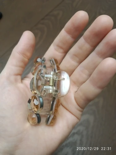 Заколка меньше , чем ожидала, но на небольшой объем волос подойдет. Сбоку у камешков неаккуратная обработка. Издали не видно, но качество страдает..