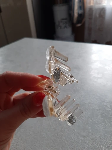 Сама заколка пластиковая, а стразы из стекла с зеркальным эффектом. Очень хорошая