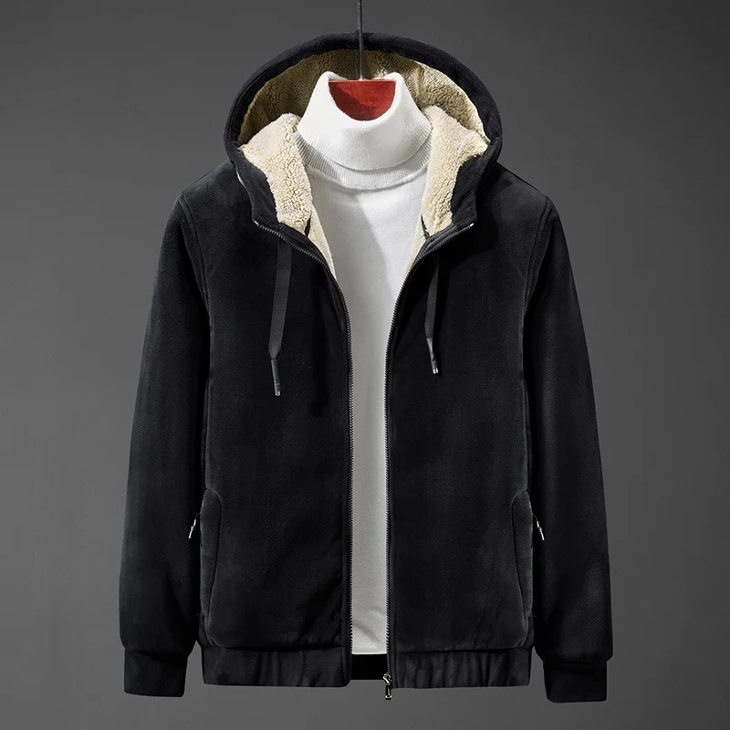 Зимние флисовые толстовки, мужская повседневная тонкая Толстая теплая куртка на молнии с капюшоном, уличная одежда, Вельветовая ветровка, мужская куртка 8XL