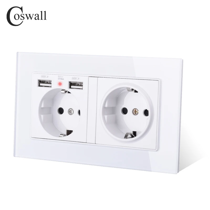 COSWALL, скрытый мягкий светодиодный индикатор, 2 USB-порта для зарядки, для России, Испании, настенная розетка стандарта ЕС
