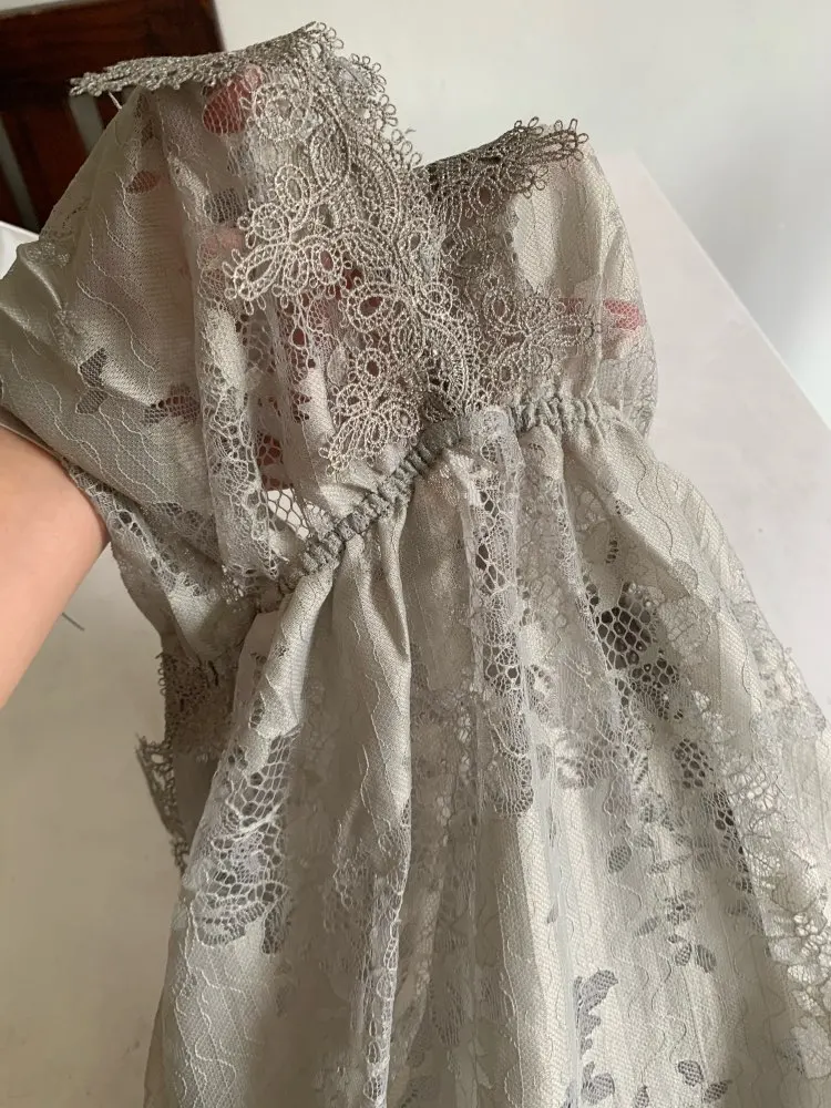 Кружевная ночная рубашка серого цвета с цветочным узором, женская ночная сорочка, ночное белье, платье на тонких бретелях, ночное платье с стрингами