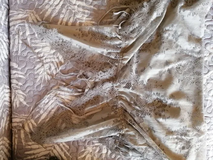 Спасибо огромное!!! Чудесная Отзыв, первое впечатление: Упакована в приятный плотный пакет на застежке. Качество отменное. Брительки-резинки с фиксатором - легко регулировать длину. Фактически на 44 размер по длине - чуть выше колена. Кружево и рисунок ткани смотрится изящно и привлекательно. Золотистая фурнитура. Завязочки с одной стороны шелковистые и гладкие, с другой - бархатистые - приятно касаться. Обратите внимание на кружева и внутренние швы - чувствительной кожей они могут восприниматься особенно ярко.