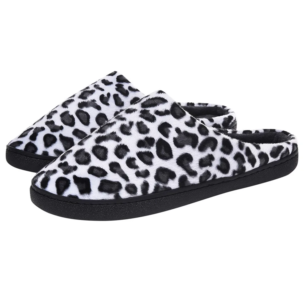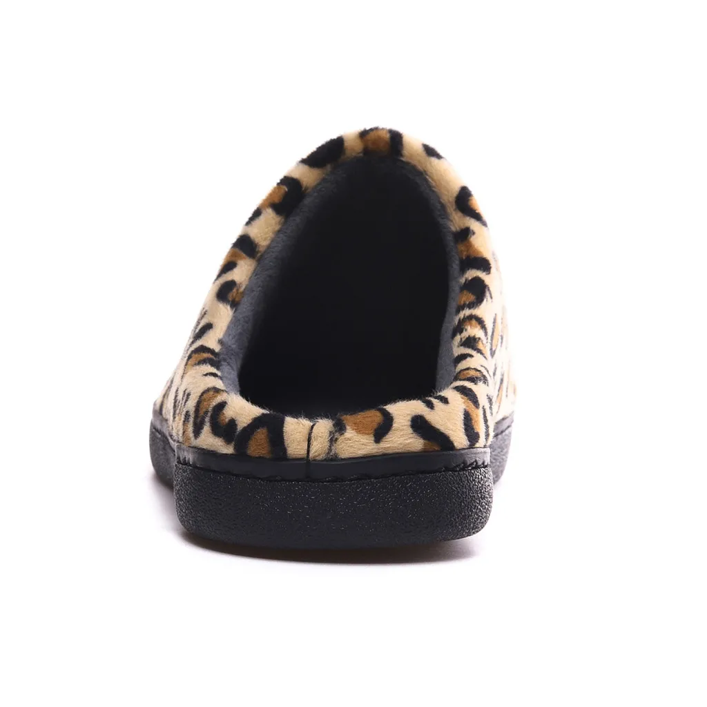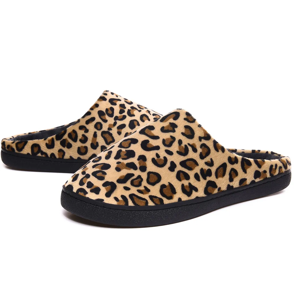 Женские домашние тапочки с леопардовым принтом; зимние Нескользящие теплые меховые домашние тапочки; Повседневная обувь для спальни; Мягкие плюшевые гостиничные шлепанцы