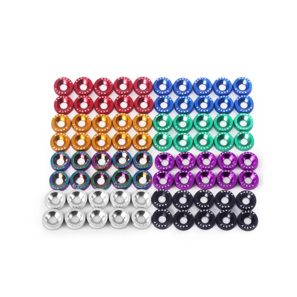Комплекты для одежды RASTP Fender шайбы изготовлены из высококачественного алюминия для укрепления долговечности и стиля. Эти шайбы для крыла могут также использоваться в качестве заклепок для металлических или пластиковых применений, в зависимости от стилей болтов с шестигранной головкой. Каждая посылка поставляется с базой, которая может быть установлена в просверленном отверстии, чтобы служить якорем для болта. Самый недорогой, но эффективный способ доставить моторный отсек автомобиля на уровень шоу.