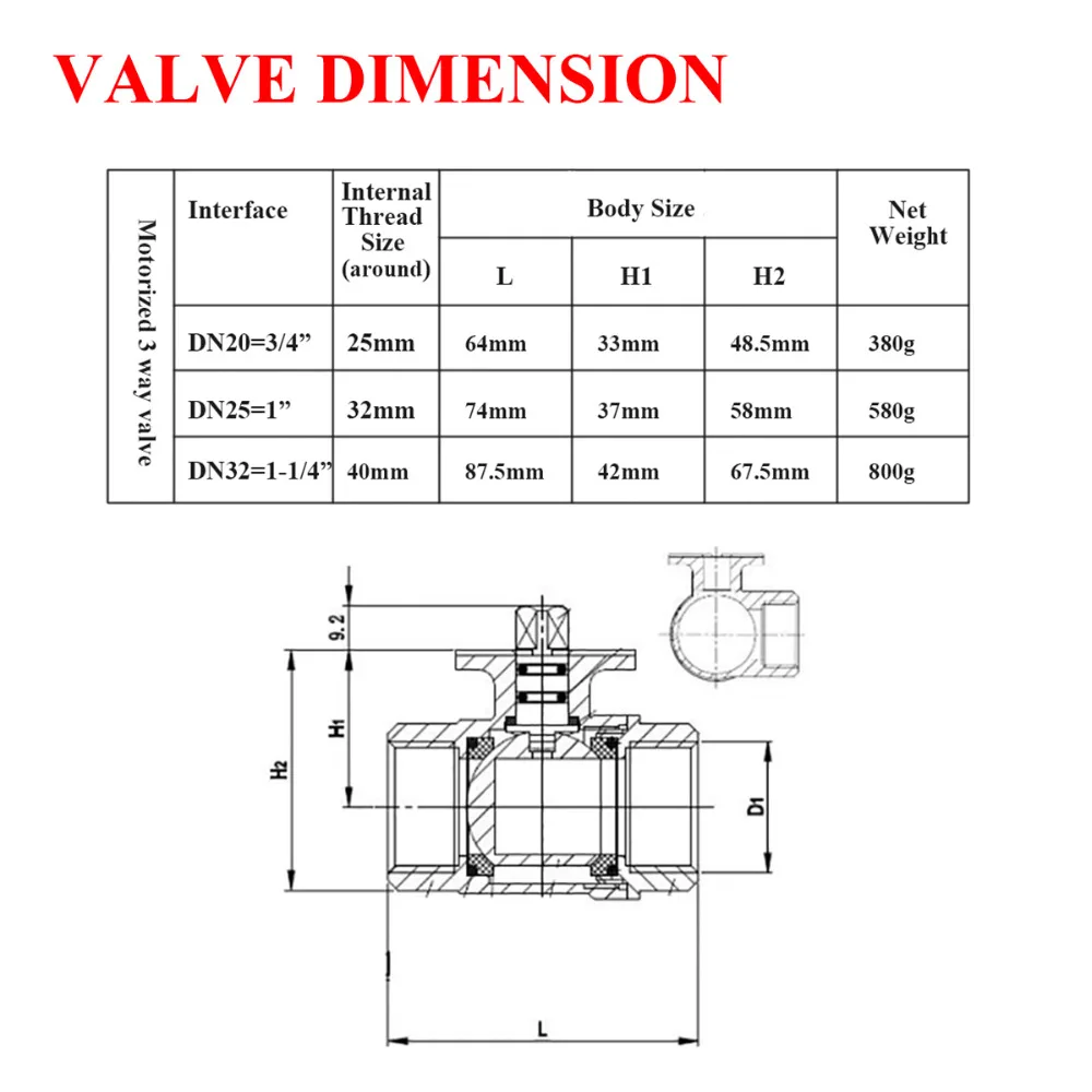 Электрический клапан латунный моторизованный шаровой клапан, трехходовой клапан, ручной и автоматический, 220 В, 24 В переменного тока, DN20, DN25, DN32 L